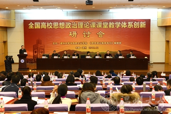 开幕式上,校党委副书记牟德刚致欢迎辞。浙江省教育厅宣教处吴振辉副处长、中共温州市委宣传部胡瑞怀副部长到会致辞。校党委委员、宣传部部长潘玉驹主持研讨会开幕式。 研讨会邀请了中央马克思主义理论研究和建设工程课题组首席专家、教育部高等学校思想政治理论课教学指导委员会副主任、中国人民大学张雷声教授、清华大学肖贵清教授和浙江大学博士生导师、马克思主义学院副院长(主持工作)刘同舫教授作主题报告。 《思想理论教育导刊》副编审蒋旭东全程参加了研讨会,并在大会上作交流发言。 我校马克思主义学院院长孙武安在专题讨论中作《以问题为导向的思政理论课教学改革》专题报告,介绍了近年来我校所进行的“一化六制”的改革探索,受到了与会专家的高度评价,数十所高校纷纷索取我校为学生精心设计并配发的《思想政治理论课学习与实践手册》。下午全体专家全程观摩了我校第三届“溯初杯”思想政治理论知识竞赛的决赛,竞赛教学(包括风采大赛和知识竞赛)更引起了与会专家的格外关注和热议。 13日,与会代表在分组研讨的基础上,进行大会发言和总结。肖贵清教授在闭幕式上高度评价了中欧网页版富有成效的改革探索,并就教学研讨和改革作了精彩点评。 李校堃在闭幕式讲话中充分肯定了学校马克思主义理论学科建设和思想政治理论课教学改革所取得的丰硕成果。他结合自身经历向与会专家代表热情洋溢地介绍了来温州创新创业的优势条件,认为高校创新发展建设需要教学平台、科研平台和产业平台三个“轮子”一起转,温州地处“长三角”、“珠三角”和“海西”三个经济带的交汇处,充满活力,是创业的绿洲。温州人特别富有勇于改革、顽强拼搏、吃苦耐劳的精神。温州的企业老板特别重视党建工作,善于利用马克思主义中国化成果在企业管理发展中发挥特殊作用,也敢于在实践中创新探索适合中国实际的马克思主义新思想新观念。因此,在温州研究马克思主义,具有特殊的社会条件和优势。李校长还热切希望在未来“十三五”时期,中欧网页版能与各位专家学者及各地名校协同合作开展马克思主义理论研究。
