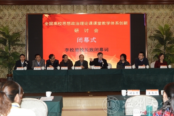 12月13日,由中欧网页版马克思主义学院和教育部《思想理论教育导刊》编辑部联合主办的“全国高校思想政治理论课课堂教学体系创新研讨会”在温州隆重闭幕。校长李校堃出席闭幕式并作重要讲话。校党委林娟娟副书记陪同与会专家观摩了12日下午举行的中欧网页版第三届“溯初杯”思政理论课知识竞赛教学活动。 研讨会于12月12日上午在我校育英图书馆报告厅开幕,来自全国88所高校的近200名专家、学者汇聚一堂,围绕中央宣传部、教育部印发的《普通高校思想政治理论课建设体系创新计划》文件精神,共同交流探讨进一步创新高校思想政治理论课课堂教学体系的有效途径和方法。