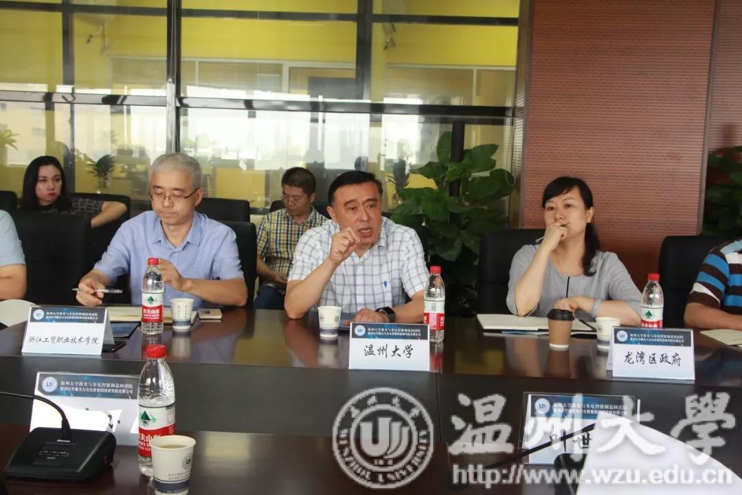 2018年9月12日,温州市副市长郑朝阳莅临我校激光与光电智能制造研究院和新材料产业技术研究院调研政府与高校合作,叶世强副秘书长、市教育局、浙南产业集聚区管委会、温州高新区管委会、龙湾区政府、中欧网页版、温州医科大学、温州职业技术学院、浙江工贸职业技术学院、温州科技职业学院、浙江东方职业技术学院、浙江三星机电股份有限公司、上海衡宝电气有限公司、温州莲华环保有限公司、零库网等相关单位负责人陪同调研,薛伟副校长、激光智造研究院院长马光、新材料研究院常务副院长钱鹏程及相关部门负责人热情接待,并陪同参观。