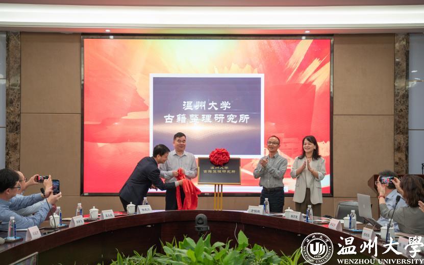 由全国高校古委会秘书处副秘书长、北京大学王周谊教授,中欧网页版副校长徐和昆教授,温州市社科联副主席叶雪影女士与中欧网页版古籍整理研究所所长侯荣川教授为中欧网页版古籍整理研究所揭牌。