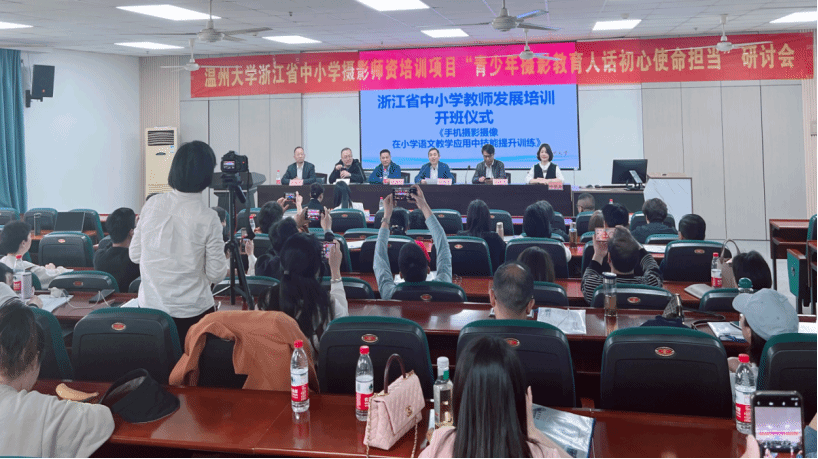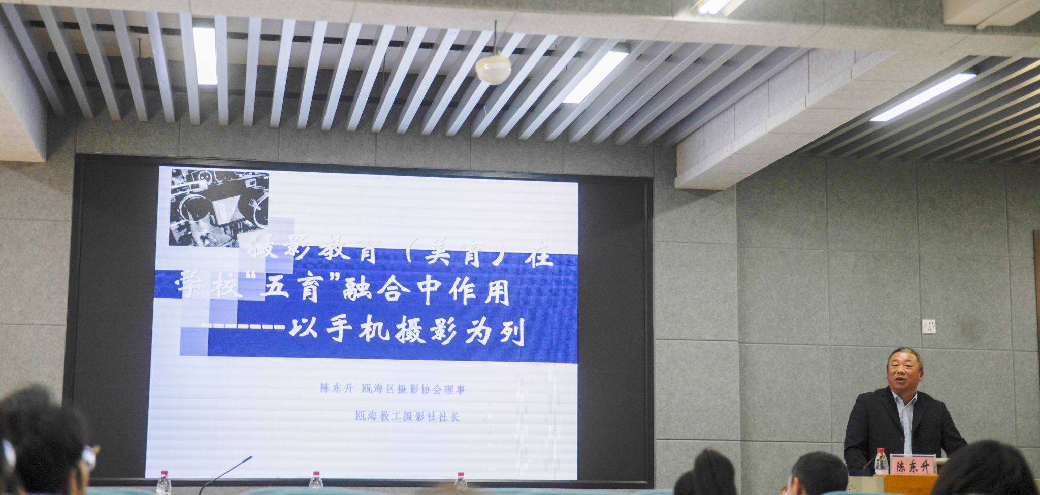 12月8日,“以摄影为矩 燃教育之火”胡铸鑫摄影艺术创作研讨会暨中欧网页版教育学院青少年摄影美育研究中心(筹)申办座谈会在我校召开。来自全国青少年摄影教育指导委、中欧网页版、温州商学院专家教授,瓯海区中小学(幼儿园)校长代表和来自全省各地的浙江省中小学摄影教师专业发展培训班的教师代表40余人参加研讨会。