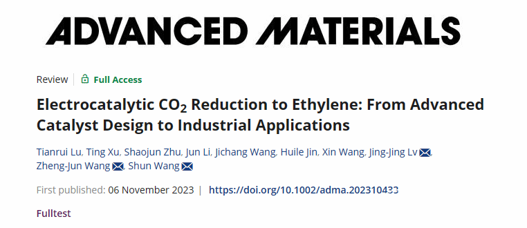 该综述以“Electrocatalytic CO2 Reduction to Ethylene: From Advanced Catalyst Design to Industrial Applications”为题发表在国际顶级期刊⟪Advanced Materials⟫期刊上。中欧网页版为第一通讯单位,我校化材学院2021级硕士生陆天睿、中欧网页版博士后徐婷为共同第一作者,我校化材学院吕晶晶教授、王正军博士、王舜教授为共同通讯作者。