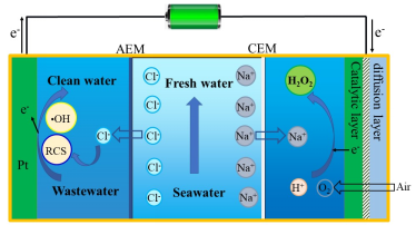 近年来,电化学高级氧化工艺(EAOPs)因其能够高效降解化工废水、制药废水、电镀废水等工业废水中的多种难降解有机污染物而受到越来越多的关注。但其在工业废水中的应用仍然受到电极活性和稳定性低、电流效率低、能耗高等限制。因此,部分研究者提出采用耦合工艺(如:光电催化、电催化过硫酸盐活化和电芬顿等)来提高EAOPs效率,以更好地应用于废水处理。然而,这些耦合工艺需要额外的化学药剂或辅助能源,从而增加了处理成本。