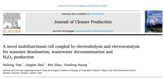 近日,中欧网页版生命与环境科学学院黄先锋副教授带领的团队在国际著名期刊《Journal of Cleaner Production》(SCI 一区TOP 期刊,IF = 11.1)上发表题为“A novel multifunctional cell coupled by electrodialysis and electrocatalysis for seawater desalination, wastewater decontamination and H2O2 production”的论文。