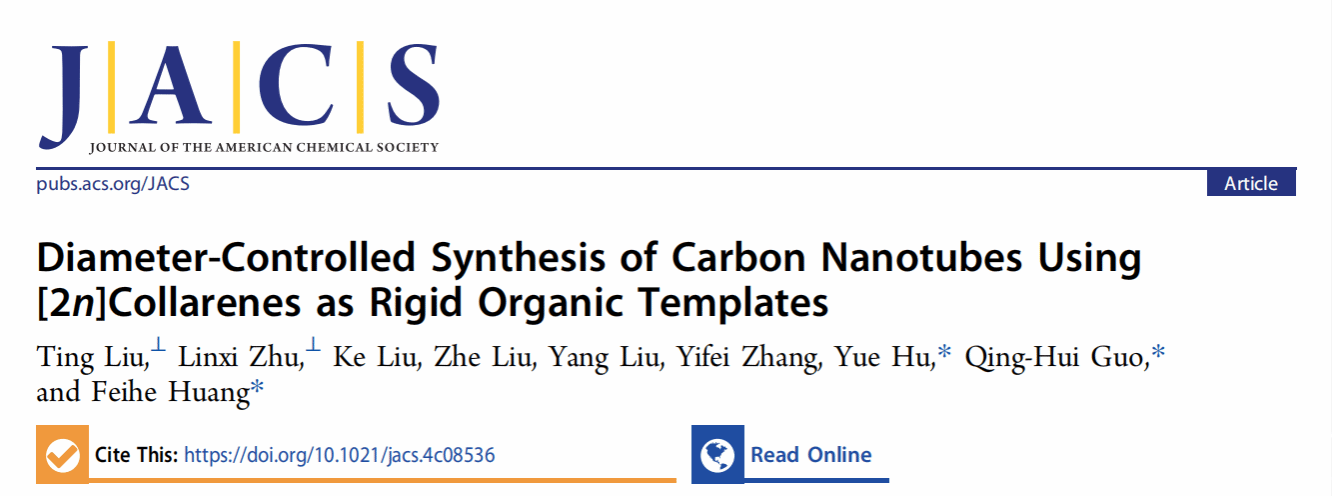 单壁碳纳米管(SWCNTs)因其卓越的理化性质而备受关注。碳纳米管的直径对其性质有着重要影响。因此,直径可控地合成SWCNTs对其实际应用至关重要。利用有机分子为模板实现SWCNTs的生长具有重要价值。首先,其结构明确,有利于SWCNTs的直径可控生长。其次,有机模板避免了金属污染问题。在过去十年中,使用有机模板(如CPP和曲面多环芳烃)生长SWCNTs取得了巨大的进展。然而,高效生长窄直径分布的SWCNTs仍然面临挑战。其中最大的阻碍是缺乏合适的模板分子。分子碳纳米带做为碳纳米管的最小重复单元,其刚性结构为SWCNT生长提供精准模板,有利于SWCNT直径可控制备,因此在碳纳米管生长领域引起了广泛关注。然而迄今为止,利用分子碳纳米带为模板实现SWCNTs的直径可控生长仍未被报道。近日,中欧网页版胡悦特聘教授、清华大学郭庆辉副教授、浙江大学黄飞鹤教授合作在该领域实现了突破。