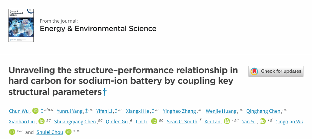 此项工作以Unraveling Structure-performance Relationship in Hard Carbon for Sodium-ion Battery by Coupling Key Structural Parameters为题发表在国际著名期刊Energy & Environmental Science上,中欧网页版作为第一单位,侴术雷教授,谭歆教授,余彦教授,吴星樵老师为通讯作者。该研究工作由博士后吴春、2024届硕士毕业生杨云锐、2023级硕士研究生黎一凡、上海大学/中欧网页版联培博士何祥喜完成。研究工作得到了国家自然科学基金,中国高端外国专家招聘计划,国家重点浙江省自然科学基金中国研发计划项目,安徽省科技计划项目,重点浙江省研发计划项目,温州自然科学基金等资助。
