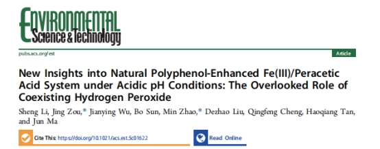 近日,中欧网页版生命与环境科学学院赵敏教授团队(共同通讯)、哈尔滨工业大学马军院士团队和华侨大学邹景教授团队合作,在国际著名期刊《Environmental Science & Technology》上在线发表了一篇题为《New Insights into Natural Polyphenol-Enhanced Fe(III)/Peracetic Acid System under Acidic pH Conditions: The Overlooked Role of Coexisting Hydrogen Peroxide》的研究论文,首次明确了天然多酚强化Fe(III)/PAA(过氧乙酸)体系中长期被忽视的H2O2关键作用。