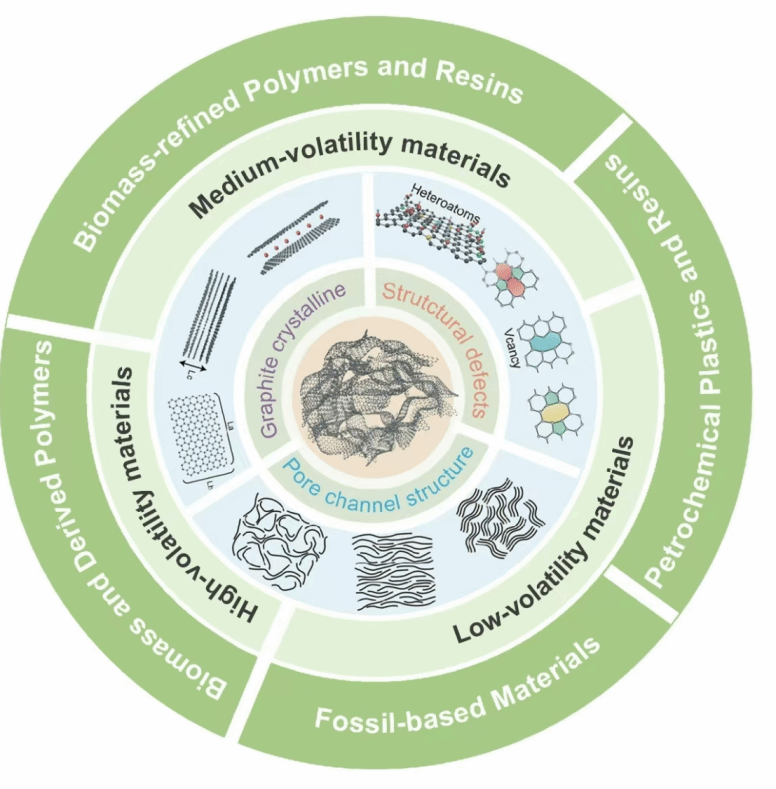 钠离子电池因钠资源丰富且分布广泛,被认为是锂离子电池可持续且具成本效益的替代方案。硬碳负极凭借其类石墨层状结构及纳米孔隙特征,是实现高性能钠离子电池的关键。然而,硬碳材料在实际商业化过程中仍面临前驱体设计、碳化工艺优化及可持续性等诸多挑战。