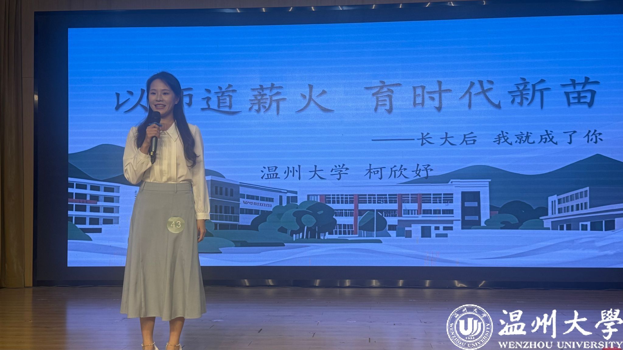 7月7日,由温州市教育局主办的2025年“师道传承·育见未来”青年师生讲述教育历史故事决赛在温州市市府路小学举行,经过温州市各县市区教育局、各在温高校的初赛选拔,共有47位选手进入决赛。我校通过初赛选拔了8名师范生代表和1名教师代表参加比赛。