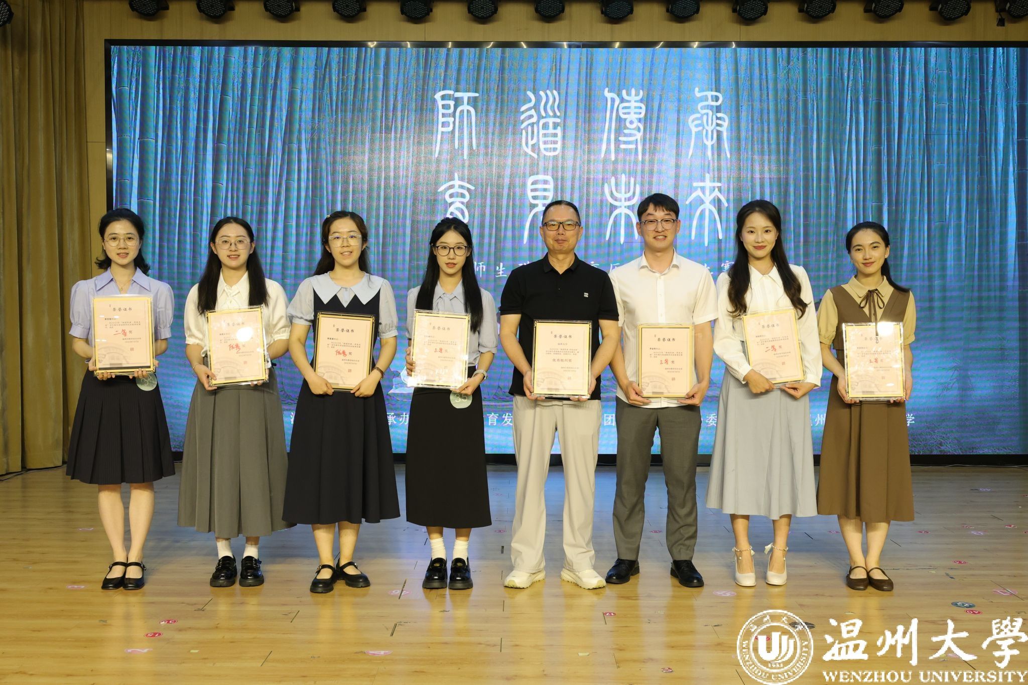 决赛中,我校选手表现出了良好的教师职业基本功和对温州教育历史传统的深刻理解。最终,马克思主义学院思想政治教育(师范)专业的柯欣妤、黄思璇荣获二等奖、教育学院小学教育专业硕士的王以琳和应用心理学(师范)专业的李奕纬获三等奖,数理学院的陈玺凝、教育学院的吴偌冰、马克思主义学院的周韵涵、邱岩雯获优秀奖;教育学院的李金伟老师获三等奖;我校获评优秀组织奖。