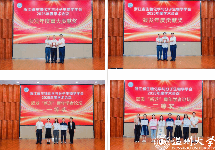 期间,召开了第一届浙江省生物化学与分子生物学学会青年学术提升研讨会。针对研究生、博士后和青年教师,举行了“新芝青年学者论坛”“宝诚研究生暑期学校”等活动,来自各高校的24位青年学者作了精彩报告,经过遴选评出一、二、三等奖。会上还对学会“年度重大贡献奖”“年度贡献奖”进行了表彰。