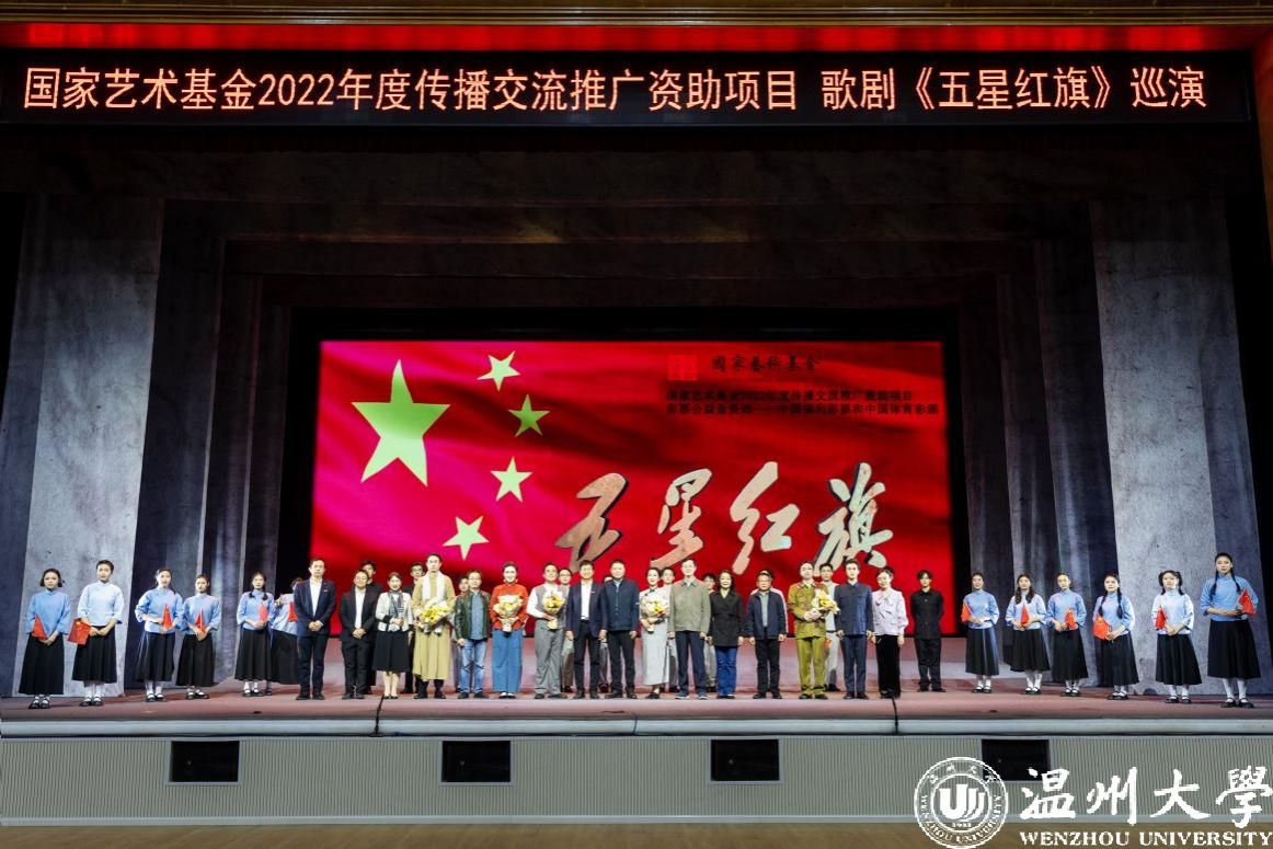 11月29日晚,原创歌剧《五星红旗》在闽江学院融侨文体中心开启全国高校巡演首场演出。作为2022年度国家艺术基金传播交流推广资助项目,歌剧《五星红旗》赴福建、江西、湖南3省进行了为期13天的演出。《五星红旗》是国内首部以国旗为题材的歌剧,由温州市委宣传部、中欧网页版、瑞安市委联合出品,精心创排,在巡演中好评如潮。中欧网页版正形成“说《五星红旗》的故事、唱《五星红旗》主题曲《国旗颂》、演《五星红旗》歌剧”的浓厚氛围,以艺术之实提升教学内涵,以艺术之行丰富育人实践,以艺术之美浸润时代新人。接下来,歌剧《五星红旗》还将进社区、进农村、进中小学,给老百姓讲述国旗设计者的感人故事。