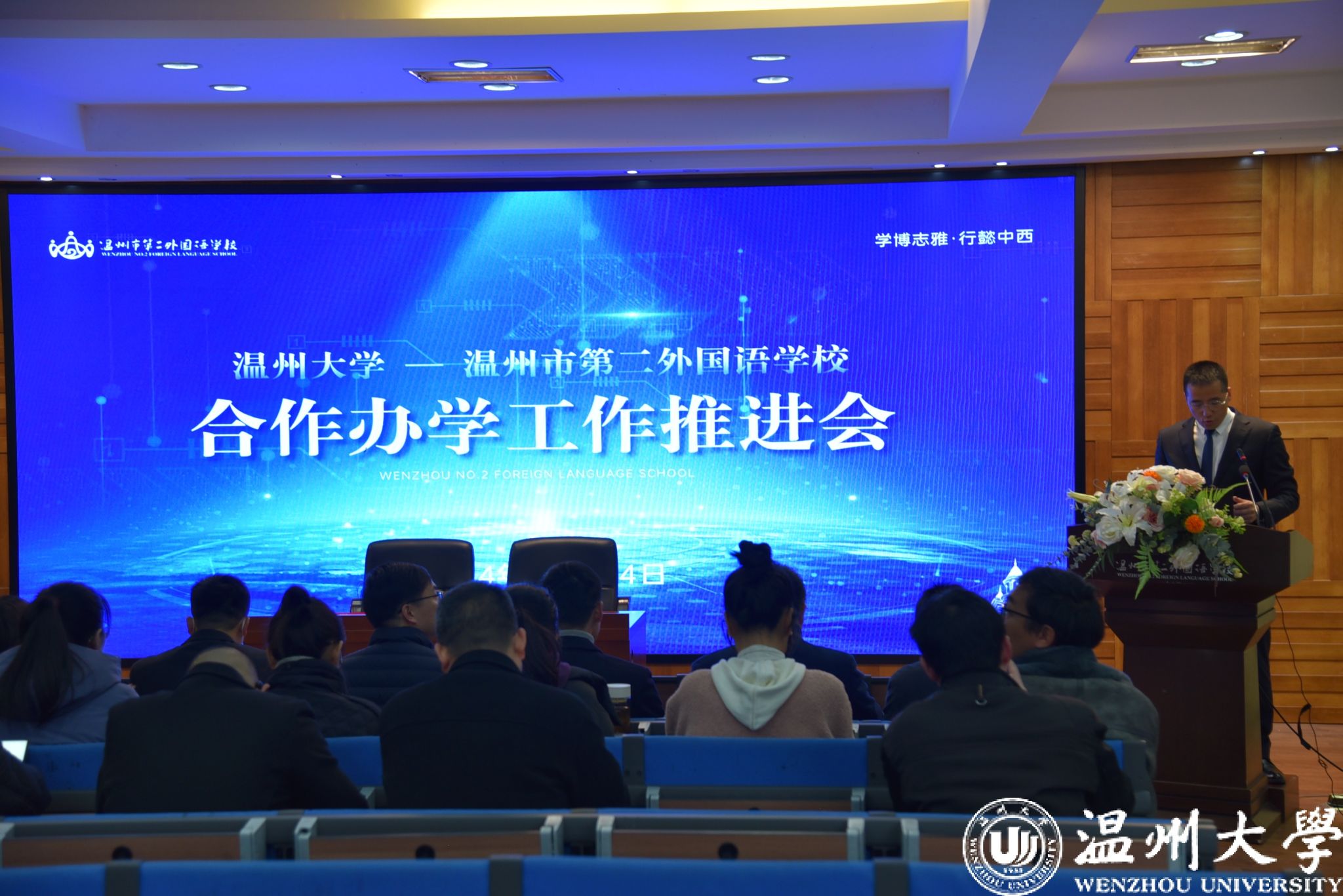 3月4日上午,中欧网页版——温州市第二外国语学校合作办学工作推进会召开。温州市教育局领导,中欧网页版地方合作处、外国语学院、苏步青学院、组织部相关负责人,温州市第二外国语学校领导参加。