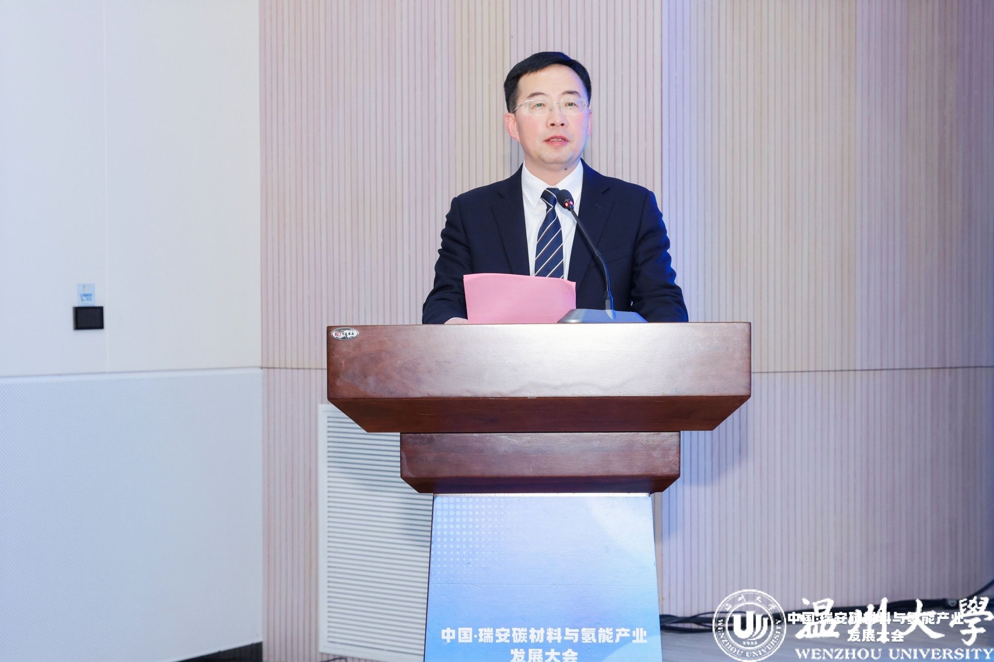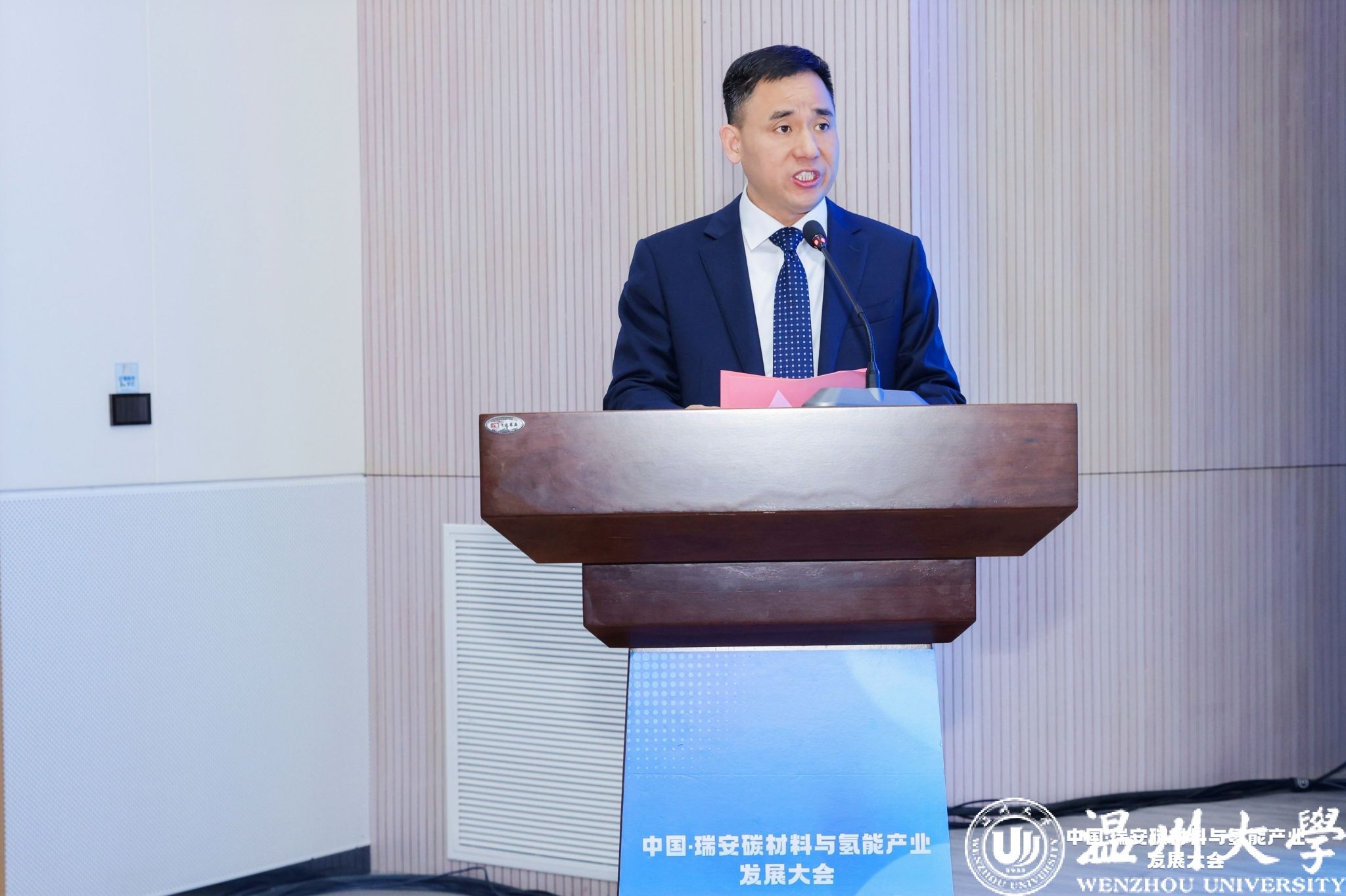 瑞安市委书记李坚致辞。他向与会的嘉宾介绍了瑞安市“人才强市、创新强市”战略的实施成果,并表示碳材料和氢能产业是国家战略新兴产业,瑞安市政府将认真贯彻上级部署,把发展碳氢产业作为培育新质生产力的重要着力点。加速加力抢占新风口,将瑞安碳氢产业打造成新质生产力的示范样本。