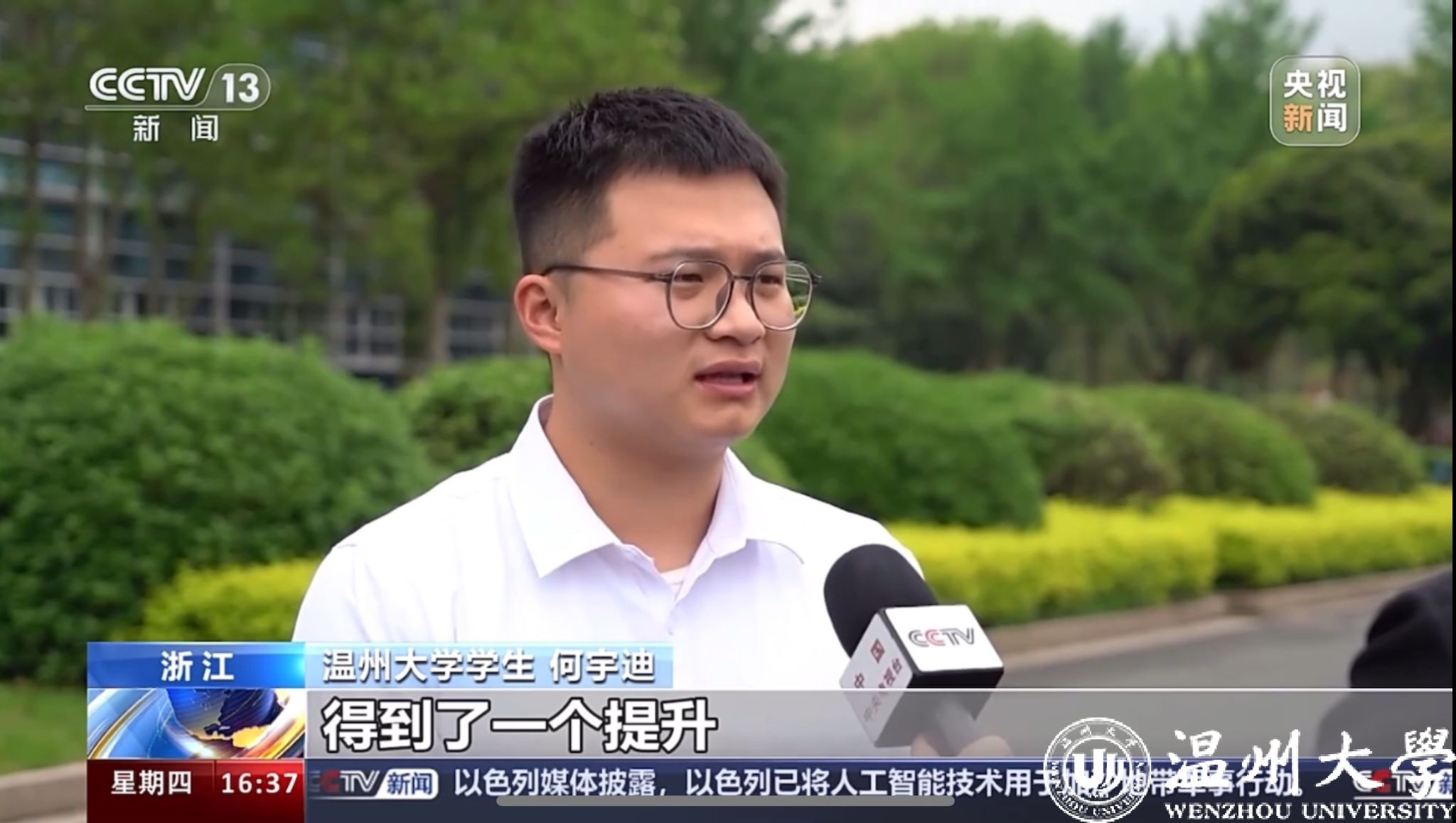 近日,央视新闻CCTV13对首届全国大学生职业规划大赛进行报道。我校商学院获得浙江省第十四届职业规划大赛就业赛道金奖的何宇迪同学作为全省唯一代表应邀受访。