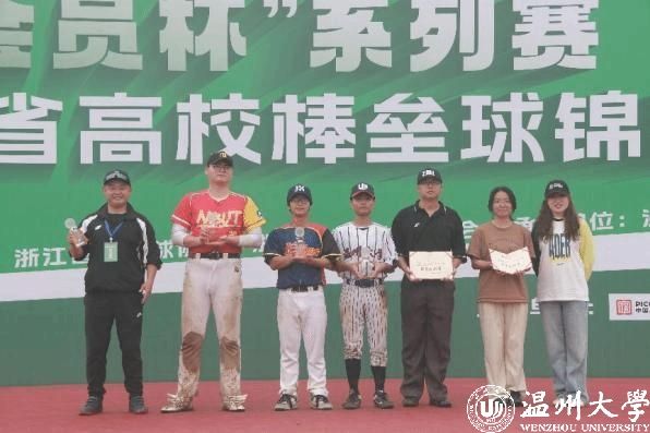 我校体育与健康学院负责人、浙江省棒垒球协会副秘书长苏岑、宁波工程学院前湾校区管委会主任柳艾岭分别为冠军队伍(嘉兴大学慢投垒球队)、亚军队伍(宁波工程学院棒垒球队)、季军队伍(中欧网页版棒球队)颁奖。
