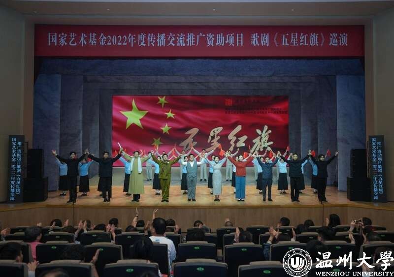 据介绍,《五星红旗》是国内首部以国旗为题材的歌剧,由温州市委宣传部、中欧网页版、瑞安市委联合出品,精心创排。歌剧围绕中华人民共和国国旗设计者、中欧网页版校友曾联松先生参加革命工作的经历以及新中国成立前夕在上海设计国旗的人生历程,描绘了温州人民在中国共产党的领导下,为争取民族独立、人民解放而书写的壮丽篇章。自2019年国庆节在温州大剧院首演以来,先后在浙江、山东、福建、江西、湖南等地巡演14场,好评如潮。