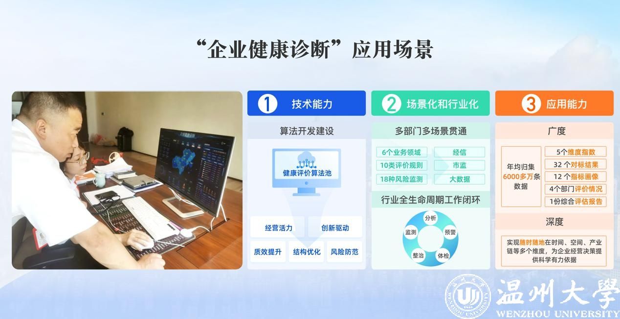 让人欣喜的是,温州“出生”的“企业健康诊断系统”既是优化营商环境的典型案例,又是数据要素增值利用的实践应用。国家层面,被国务院办公厅《政务情况交流》专报采用,获国务院领导批示肯定;在全国“两个健康”工作推进大会期间作演示汇报;被国家发改委《全国优化营商环境简报》刊载并将向全国推广;被《中国信息报》《新华日报》等媒体重点报道。省级层面,入选营商环境优化提升“最佳实践案例”、数字经济创新提质“一号发展工程”优秀案例和产业数据价值化典型案例。