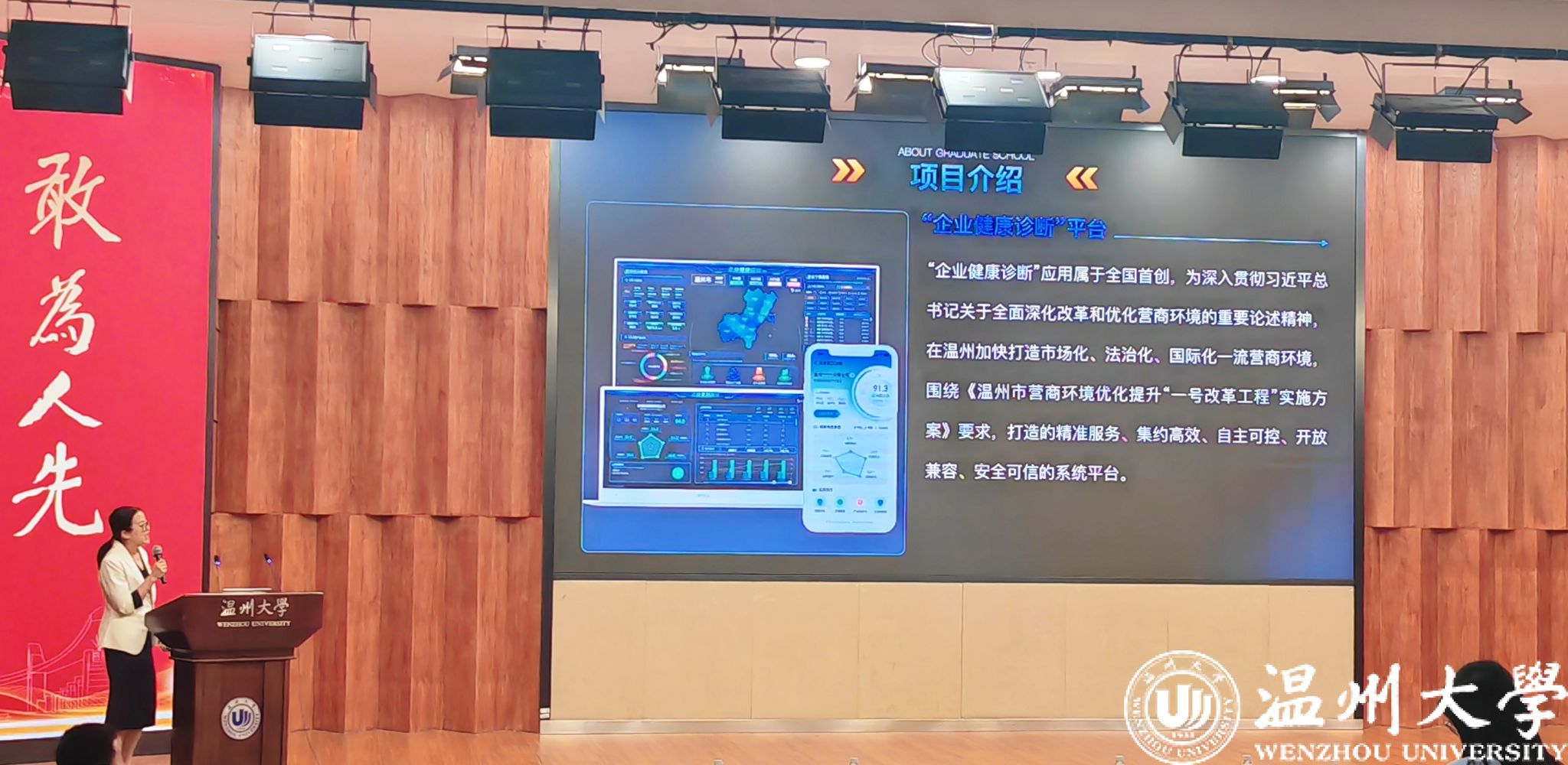 在中欧网页版服务温州高质量发展项目签约推介会上,大数据与信息技术研究院副院长陈丽燕现场演示了全国首创的“黑科技”成果——“企业健康诊断系统”项目。“项目通过深度分析企业的生产经营数据,为企业提供科学的决策支持,帮助企业定位问题、优化管理流程,提升运营效率。我们围绕经营活力、创新驱动、质效提升、结构优化、风险防范五个方面,建立了健康评价算法池,与经信、市监、大数据等部门互动,实现省、市、县、乡、网格五级贯通,初步形成企业数据‘分析-预警-体检-诊治-监调’的全生命周期工作闭环。”陈丽燕进一步介绍,“企业健康诊断系统”项目还可以动态掌握区域经济情况、微观经济画像和个体企业发展情况,对苗头性问题实行预警,助力政府部门精准施策。