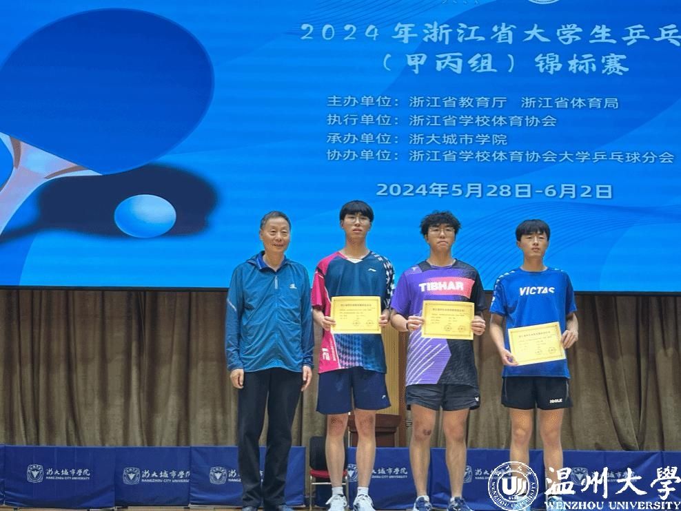6月2日,2024年浙江省大学生乒乓球(甲丙组)锦标赛在杭州市浙大城市学院落下帷幕。我校乒乓球队奋勇拼搏,丙组男子团体首次进入决赛斩获第二,取得历史性突破;男子单、双打连续三年保持第三;甲组单项继去年首次获得第一,再次在混双项目获第五名,2名队员获“优秀运动员”荣誉称号。