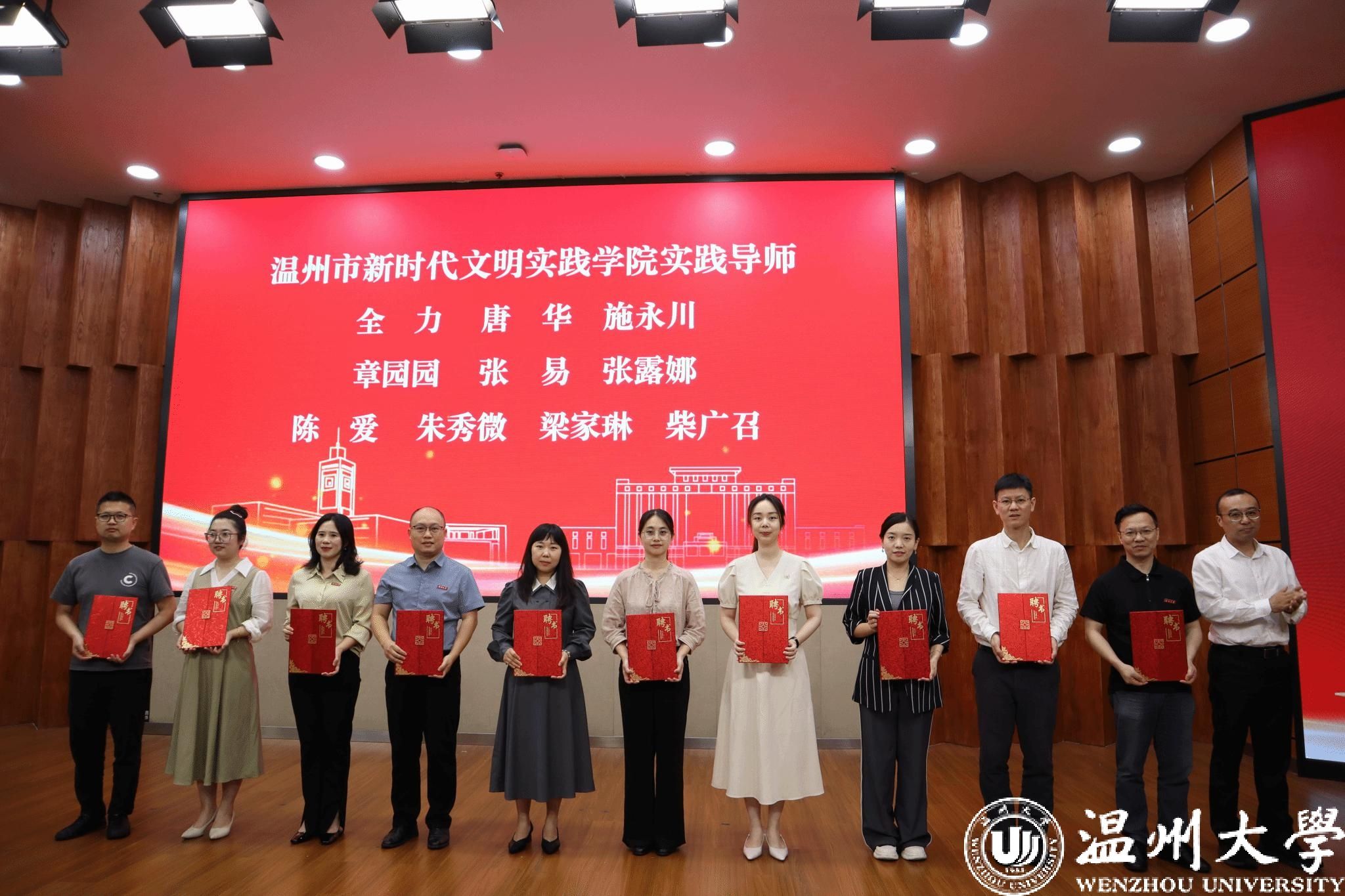 6月18日上午,温州市新时代文明实践学院揭牌暨2024年新时代文明实践中心(所、站)专兼职人员第一期教学交流班开班仪式在我校举行。市委宣传部副部长、市文明办主任、市文明中心主任沈林杰,校党委副书记庄兴忠等领导出席。