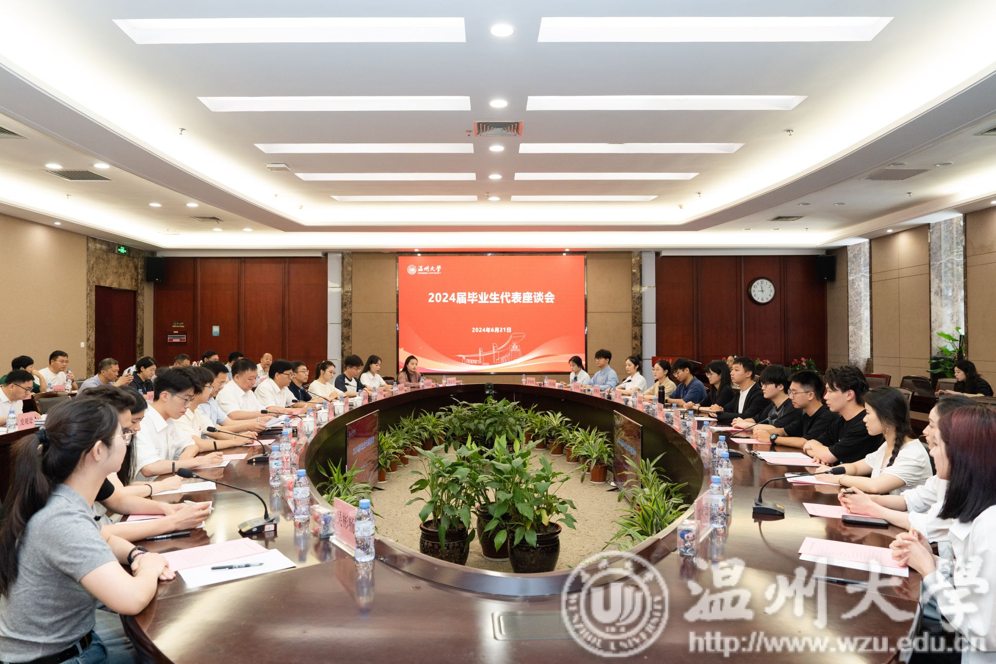 6月21日上午,我校召开2024届毕业生代表座谈会,校长赵敏,副校长王尧骏,党委委员、组织部部长夏春雨,各行政部门负责人以及来自全校各学院优秀毕业生代表参加座谈会。校党委副书记庄兴忠主持。