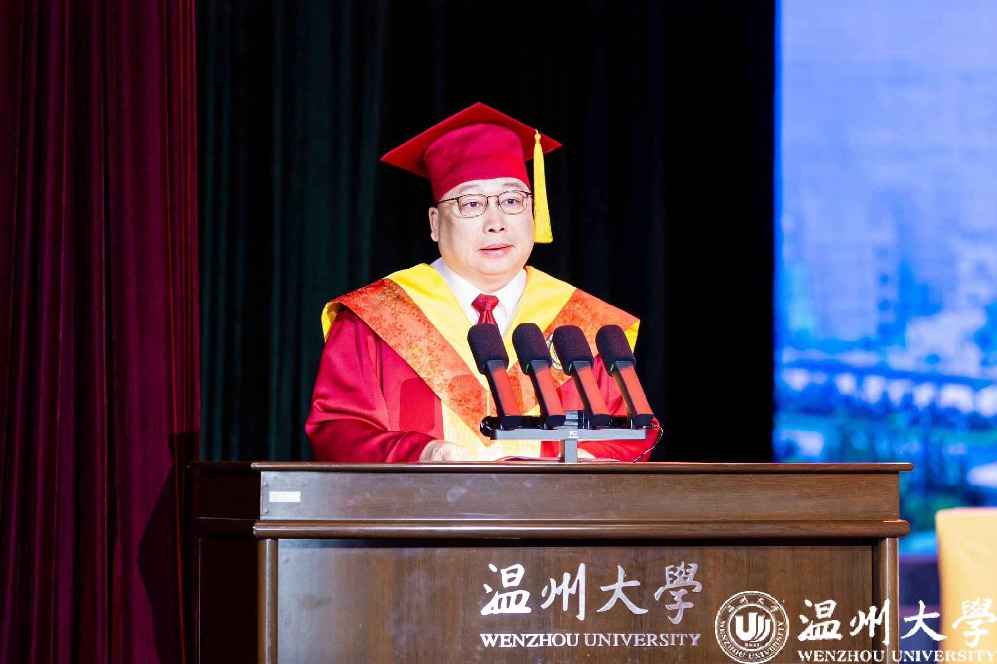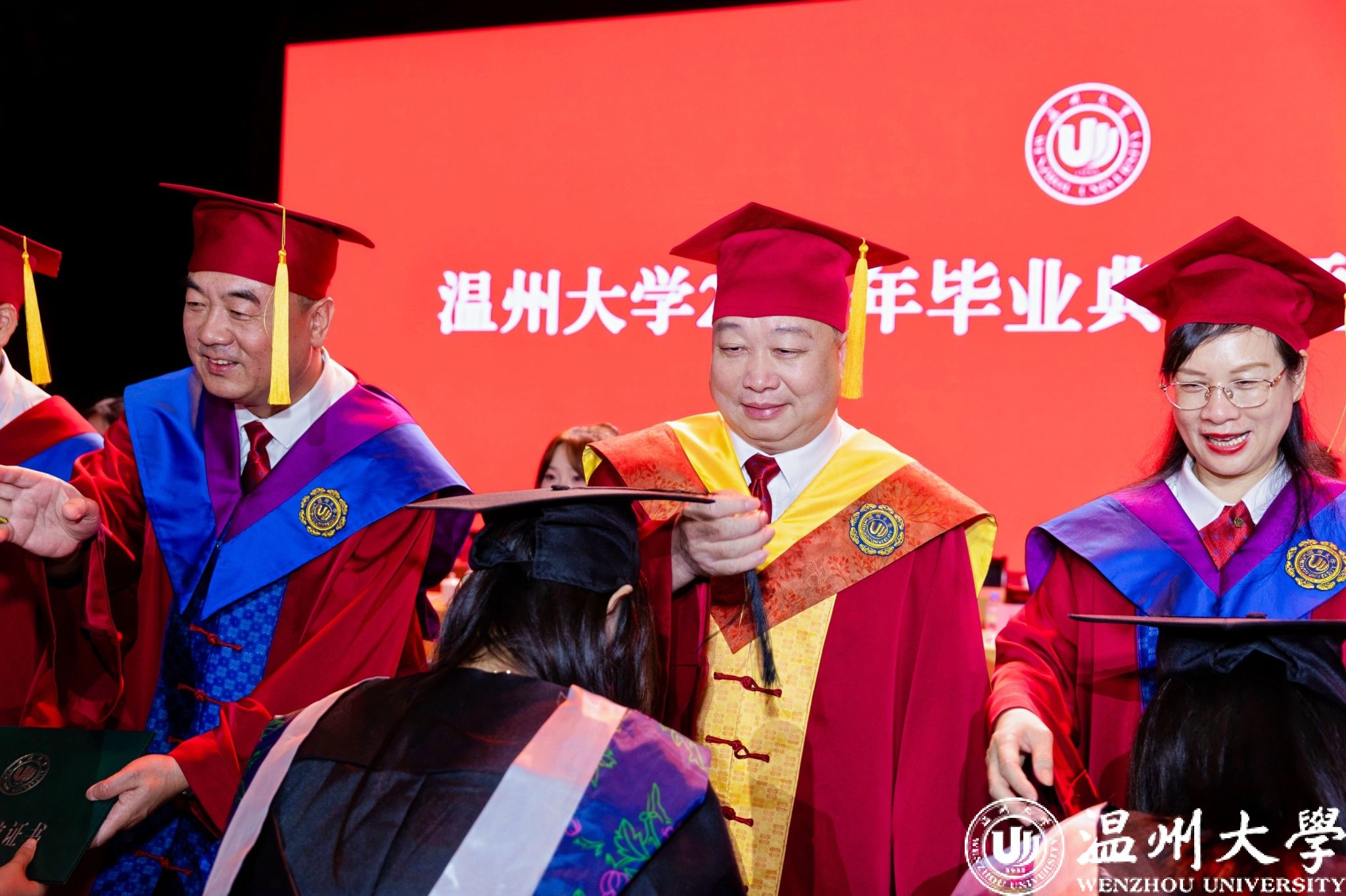 以温大之名启程未来,赵敏校长希望毕业生勇于破圈、拥抱变化。挑战固有观念、积极拓展边界,在变化的激流中实现“勇进”,方能创造另一个“起点”。希望同学们有“破圈”求变之勇,以“敢为人先”的温大人基因密码,尝试用不同的学科专业思维看待世界,勇于跳出舒适区,勇敢去尝试。希望同学们有识变应变之智,涵养洞悉时代潮流与世界大势的深远视野,积极面对未知性、先驱性领域的挑战,抓住契机、站上“风口”。以温大之名启程未来,赵敏校长希望毕业生持续努力、终身成长。“终身成长”是一个人不断自我进化的底层逻辑,是在突破一个个积累期之后,依然螺旋式向上提升、蝶变。希望同学们坚持长线思维,以脚踏实地的自律和努力深耕当下、蓄力未来。希望同学们持续学习成长,不自我设限。正如原中欧网页版校长、苏步青院士寄语的一样,“勇敢而愉快的奔向工作岗位,在工作中继续学习,在学习的基础上提高工作质量。”以温大之名启程未来,赵敏校长希望毕业生胸怀家国、逐梦青春。青年只有将个人理想融入国家发展,才能真正将质朴平凡的“小我”熔铸为顶天立地的“大我”。希望同学们仰望星空“立大志”,怀揣“光大国族、造福人群”的温大情怀与品格,在“国之大者”中找准人生坐标。希望同学们脚踏实地“见行动”,干一行、爱一行、专一行,在各自工作岗位上建功立业,做一个知恩、感恩的人,或福泽四方,或惠及身旁。