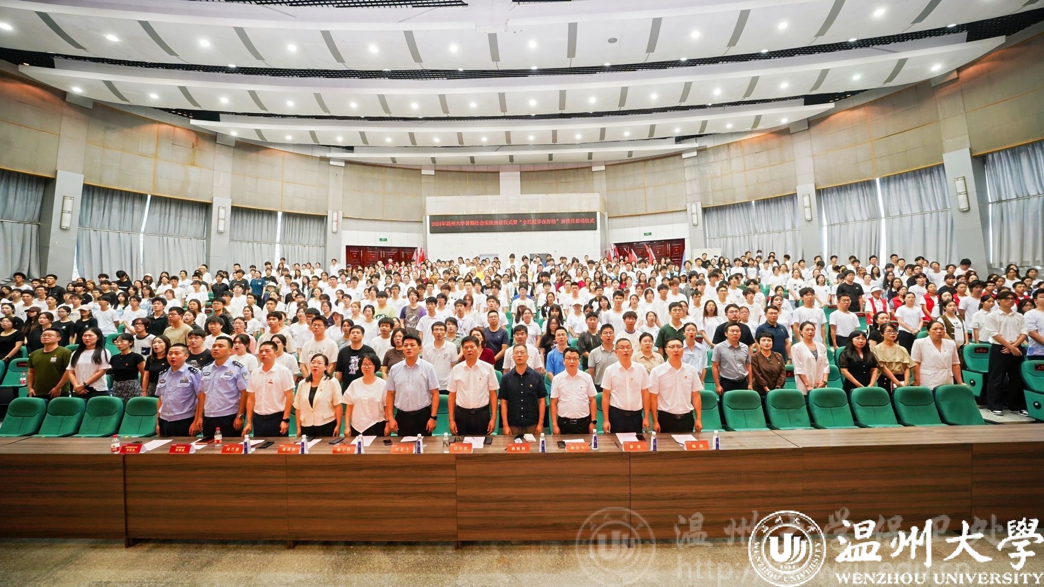 为认真贯彻落实省反诈联席办关于反诈工作的通知要求,进一步加强我校反诈宣传力度,切实增强师生的反诈防骗意识和能力,积极营造全民反诈在行动的浓厚氛围。7月6日下午,我校成功举办“警惕诈骗新手法,不做电诈工具人”为主题的“全民反诈在行动”集中宣传月启动仪式活动。校党委副书记庄兴忠出席活动,辖区茶山派出所教导员张朝晖、温州市反诈中心警官刘昱洲、各相关部门负责人和学院副书记、辅导员、以及来自各学院暑期社会实践队500余人参加活动。