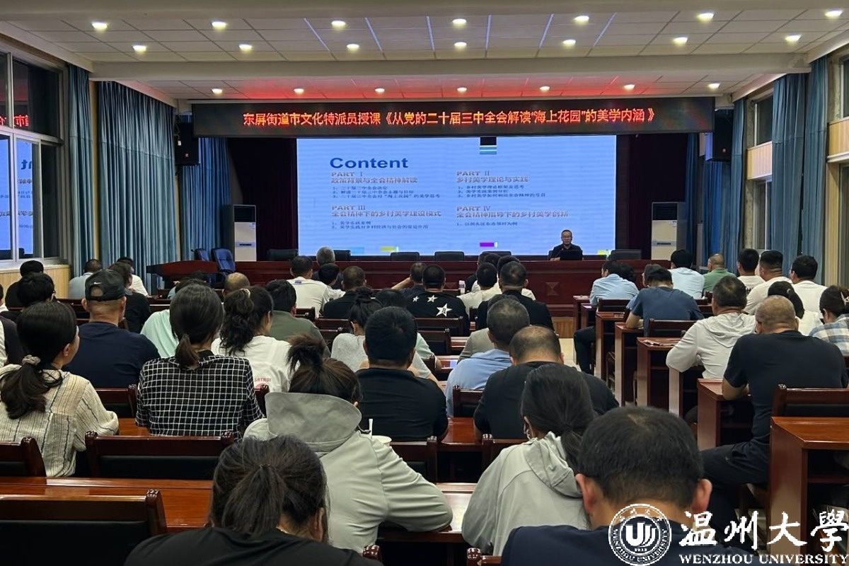 为深入学习贯彻党的二十届三中全会精神,近日,温州市文化特派员中欧网页版美术与设计学院副教授郑敬玉在派驻东屏街道开展党的二十届三中全会精神宣讲。
