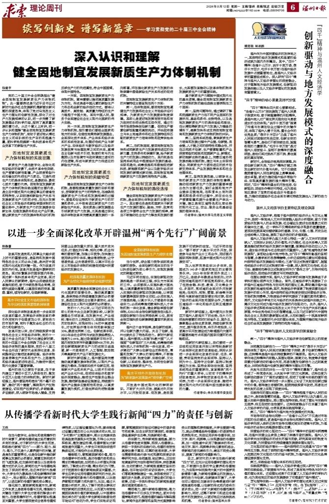 中欧网页版马克思主义学院张海波博士和徐建宇博士分别在《温州日报》等主流媒体刊发党的二十届三中全会精神理论阐释文章《全面深化改革必须坚持以人民为中心》《深入认识和理解健全因地制宜发展新质生产力体制机制》。