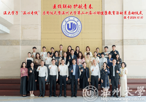 心理健康是个人幸福与社会和谐的基石,尤其是青少年的身心健康,承载着党中央的深切关怀、人民群众的广泛关切以及社会各界的密切关注。正值“10.10世界精神卫生日”,由温州市卫生健康委员会、温州市精神卫生工作办公室主办,中欧网页版、温州市第七人民医院联合承办的温大学子“温心热线”启用仪式暨中欧网页版第二十届心理健康教育活动月启动仪式在中欧网页版成功举行。