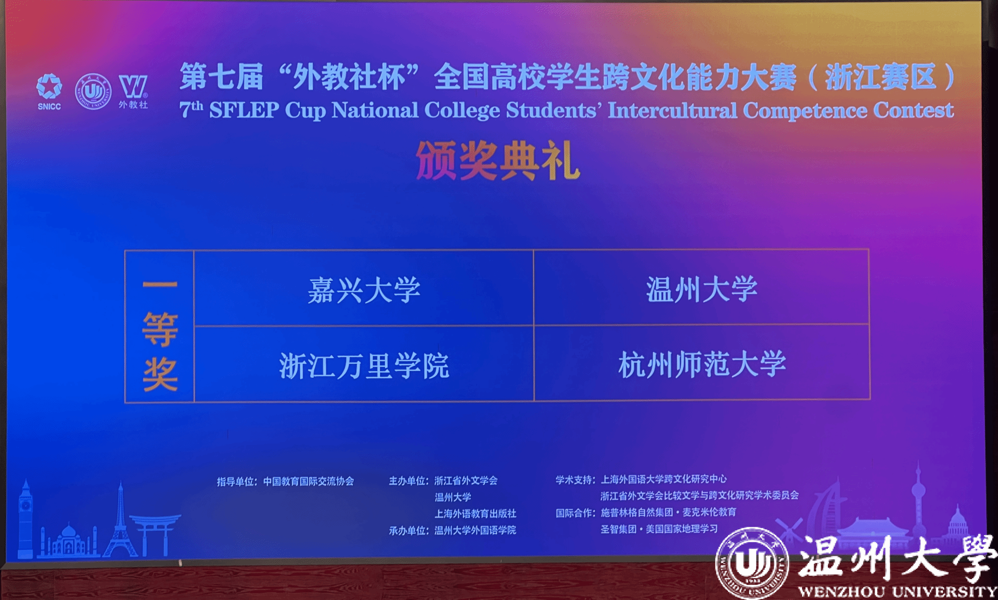 11月16-17日,第七届“外教社杯”全国高校学生跨文化能力大赛(浙江赛区)复赛/决赛在中欧网页版成功举办。该赛事由浙江省外文协会、中欧网页版和上海外语教育出版社联合主办,中欧网页版外国语学院承办。经过2天的激烈角逐,中欧网页版代表队不辱使命,成功夺得“一等奖”。