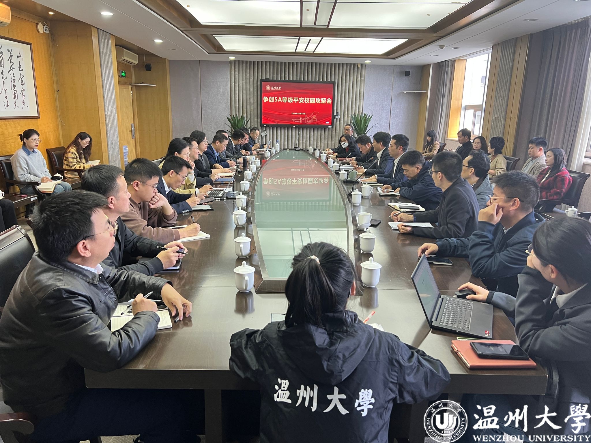 11月22日下午,我校召开5A等级平安校园攻坚会。校党委副书记庄兴忠出席会议并讲话。各学院、部门相关负责人参加会议。