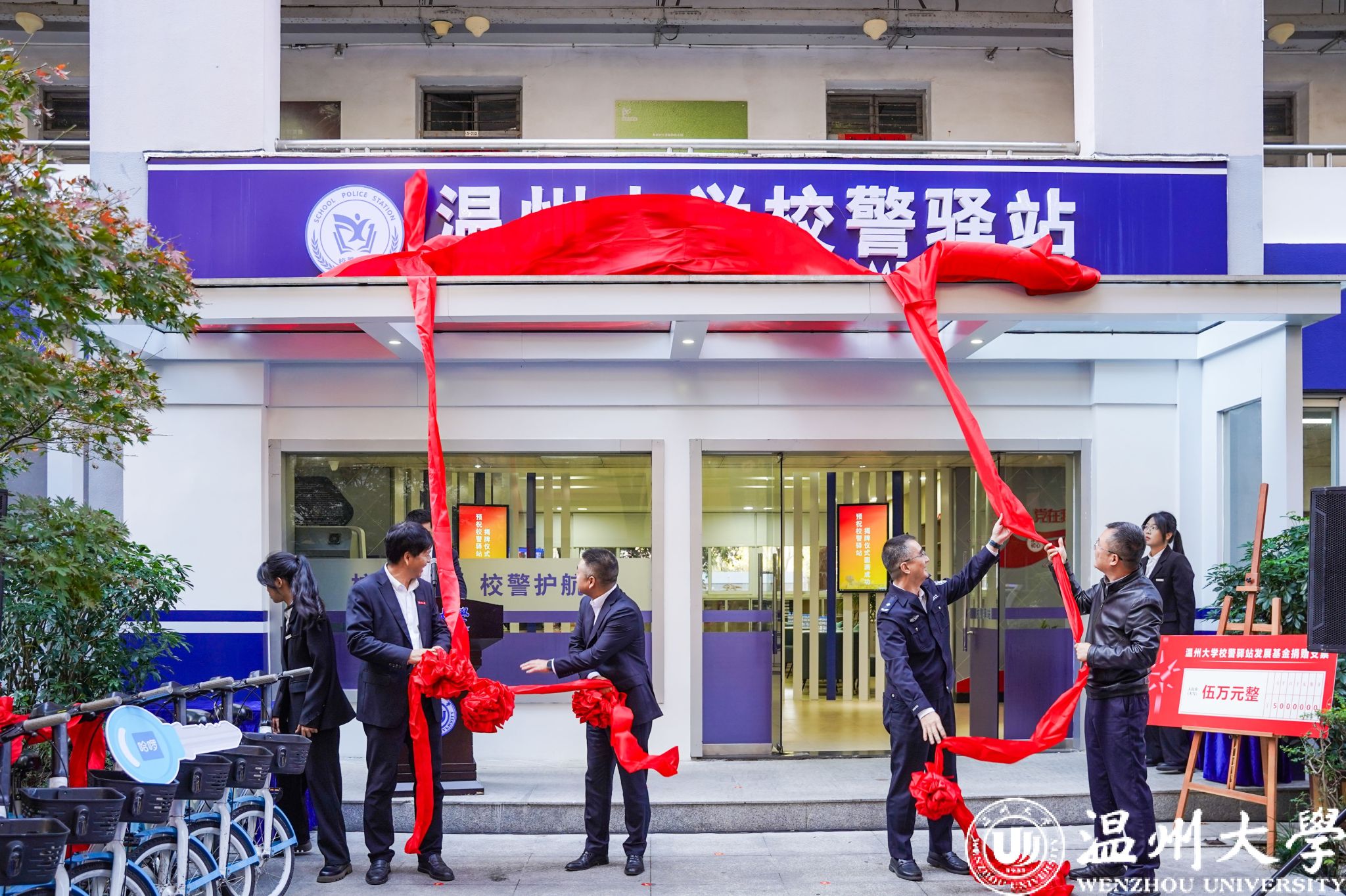 12月3日上午,全市首个“360全景式”校警驿站在我校落成。市教育工委专职副书记、市教育局党委副书记张维凯、市公安局副局长黄伟军、校党委副书记庄兴忠、市政法委、市教育局、市公安局相关部门处室、瓯海区公安分局、茶山街道、茶山派出所、校相关职能部门等领导出席,我校师生、校友、服务商代表参加仪式。
