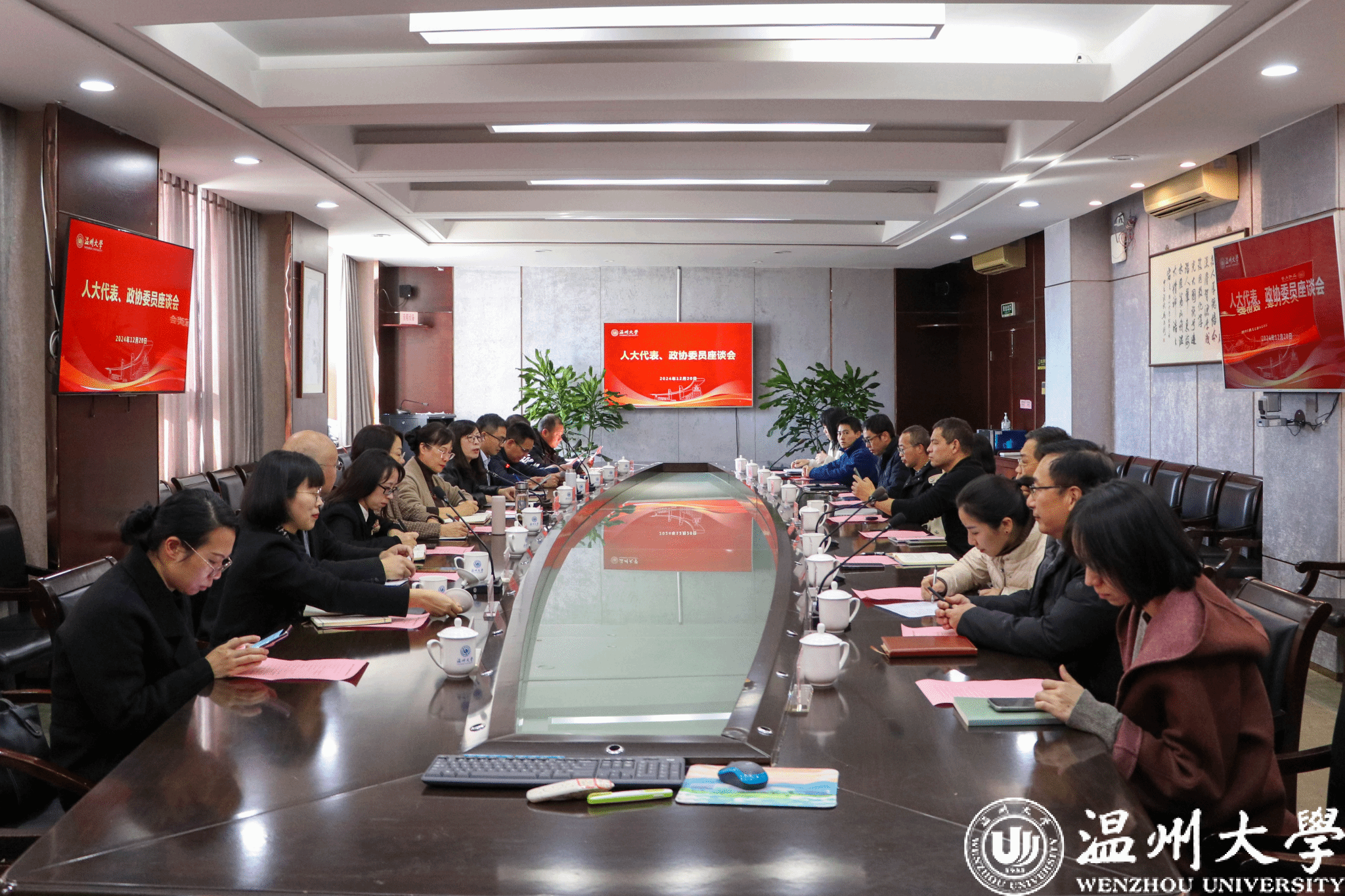 12月20日下午,人大代表政协委员座谈会在我校南校区行政楼419会议室召开。校党委副书记赵降英出席会议,20余位省、市、区人大代表、政协委员参加座谈。校党委委员、宣传部部长、统战部部长吴静主持会议。