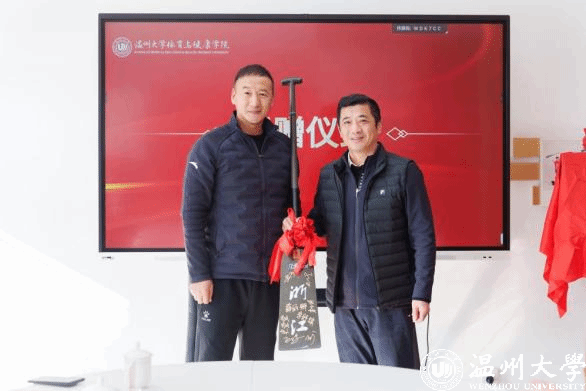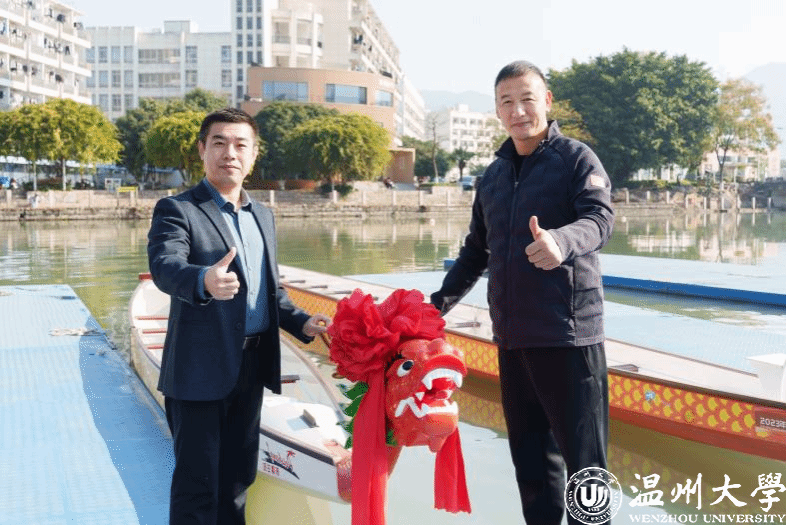 捐赠仪式上,赵伟军和划艇总教练雷文斌代表省水上运动管理中心向我校捐赠亚运会训练龙舟2艘、奥运冠军签名的划艇桨1把、亚运冠军签名的龙舟桨1把。这不仅仅是物质的赠予,更是体育精神的传承与弘扬,冠军精神鼓舞着温大学子在追求梦想的道路上,拼搏奋进、勇往直前,不断续写新的辉煌篇章。