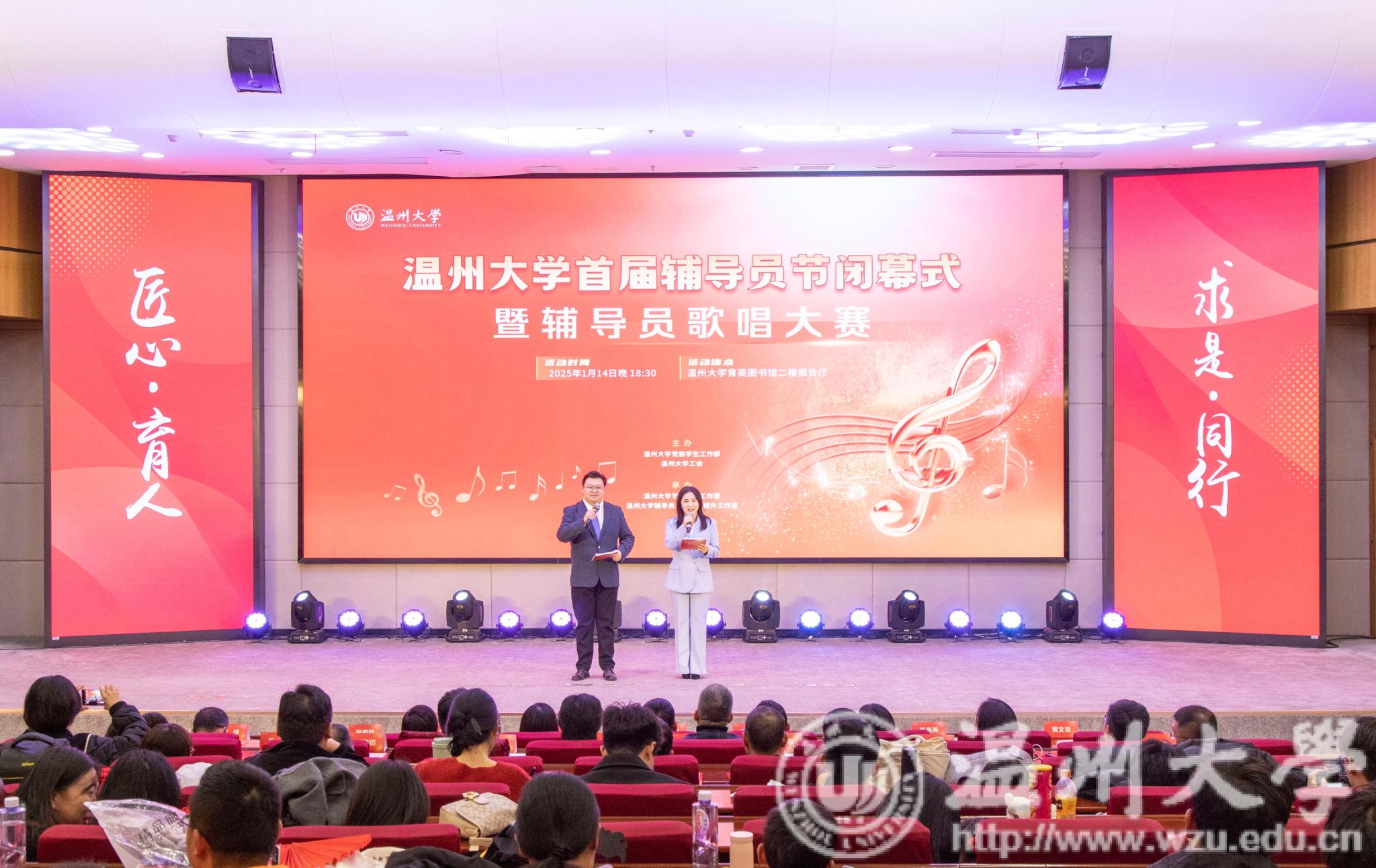1月14日,中欧网页版首届辅导员节闭幕式暨首届辅导员歌唱大赛在育英图书馆二楼报告厅圆满举行。中欧网页版党委副书记庄兴忠,中欧网页版党委委员、宣传部部长、统战部部长吴静,校学工委委员,各学院副书记和全体辅导员参加活动。