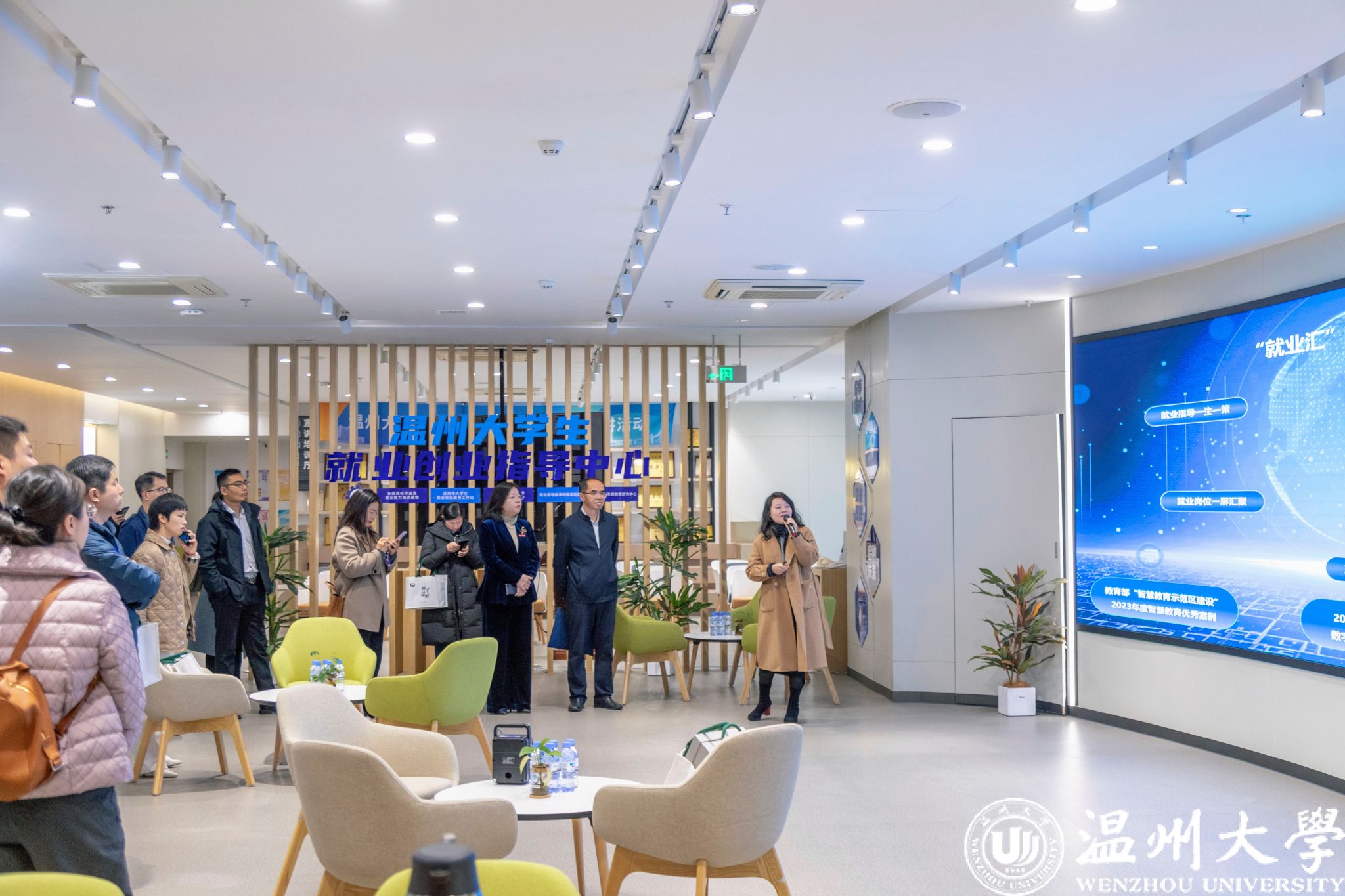 现场观摩环节,与会代表实地参观调研中欧网页版校史博物馆、科创大楼就业服务大厅。其中,“就业汇”平台通过大数据分析和资助生后台标识,精准匹配学生就业需求,展现了数字化技术在资助生就业帮扶中的创新应用。