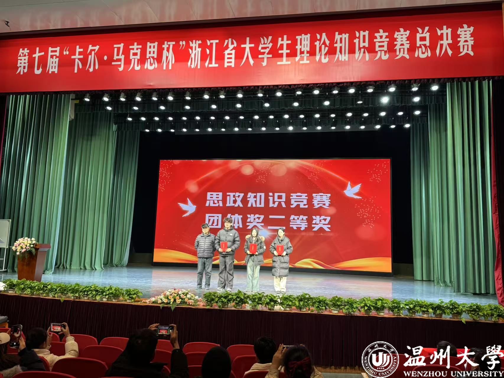 经过激烈的比拼,来自马克思主义学院的叶婷婷、李美娟同学获个人一等奖,叶婷婷同学获得浙江省大学生思政课学习标兵,国际教育学院彭丽缘、教育学院石小宝、马克思主义学院鲁怡东、刘霜同学获个人二等奖,生命与环境科学学院万秀娟、教育学院毛叙同学荣获个人三等奖,马克思主义学院李欣瑶同学获大学生讲思政课三等奖(全省第7名),关震、宫凌海、魏春艳、马丹丹、钱微微获优秀指导教师,何玲、孙邦金获优秀组织工作奖。