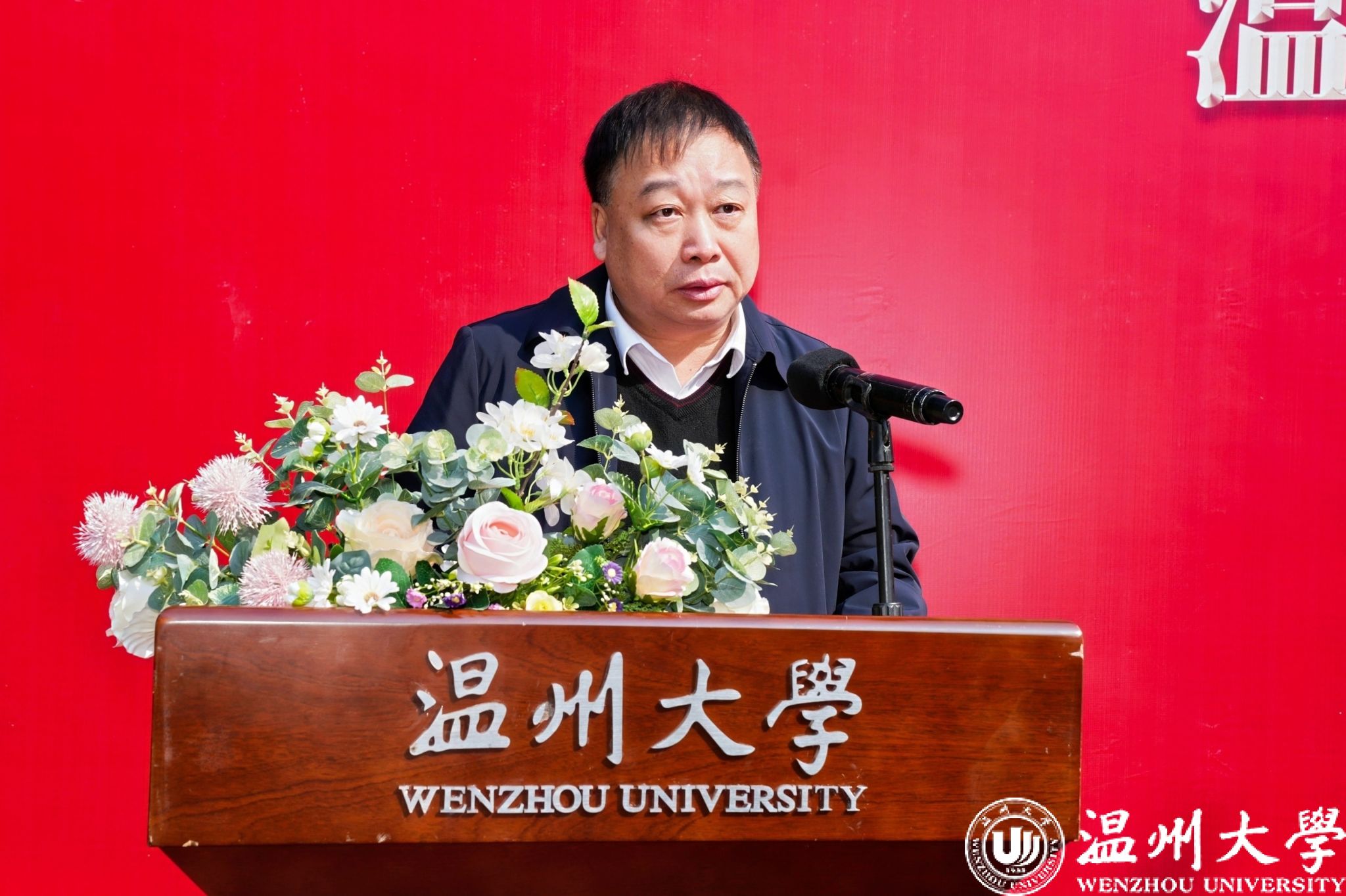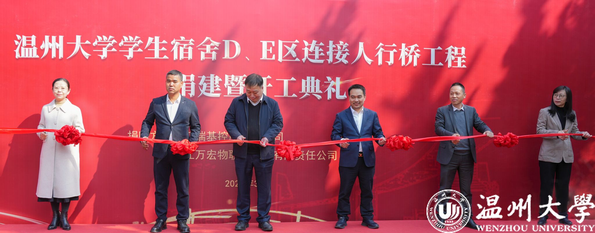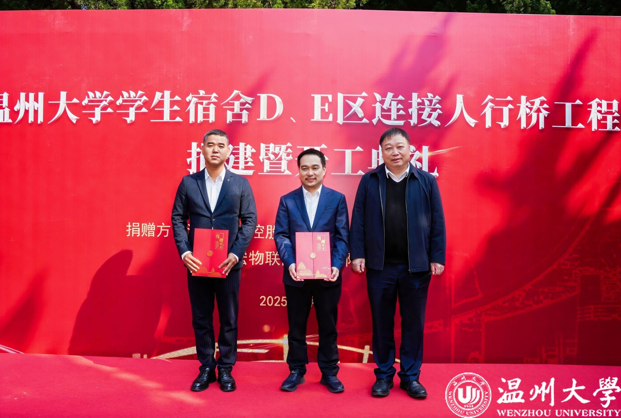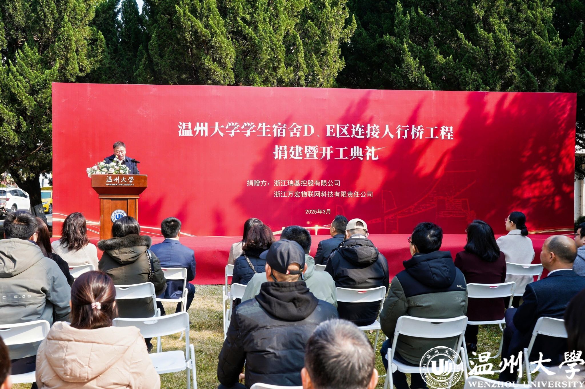 赵敏致辞。他表示,针对长期困扰D、E区师生的“过河难”问题,学校以“时时放心不下”的责任感,统筹推进人行桥建设工程,打通校内交通“微循环”,着力提升师生通行效率,并为校园增添一道亮丽的风景线。他对桥梁捐建单位表达了诚挚的感谢,对两位企业家“经世济民”教育情怀表示由衷的赞赏。