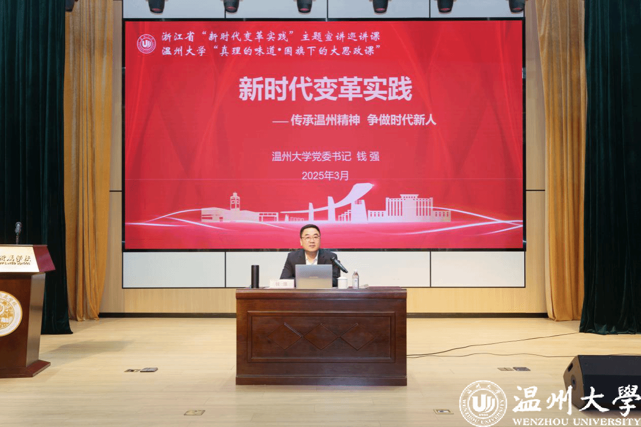 宣讲中,钱强寄语榕园学子,希望同学们以勤为壤,在风雨中锤炼筋骨,于天地间书写担当;以梦为马,在求索中开阔视野,于奉献里淬炼品格。他强调,温州人以“敢为天下先”的精神,筚路蓝缕拼搏奋斗,创造了一座城的精彩蝶变,书写了人与城市共生共荣、共鸣共进的拼搏传奇。希望同学们传承“敢闯敢拼”的温州精神,以国旗设计者、温大校友曾联松的爱国热忱为镜,使个人理想与民族复兴同频共振,在国旗下茁壮成长、早日成才。