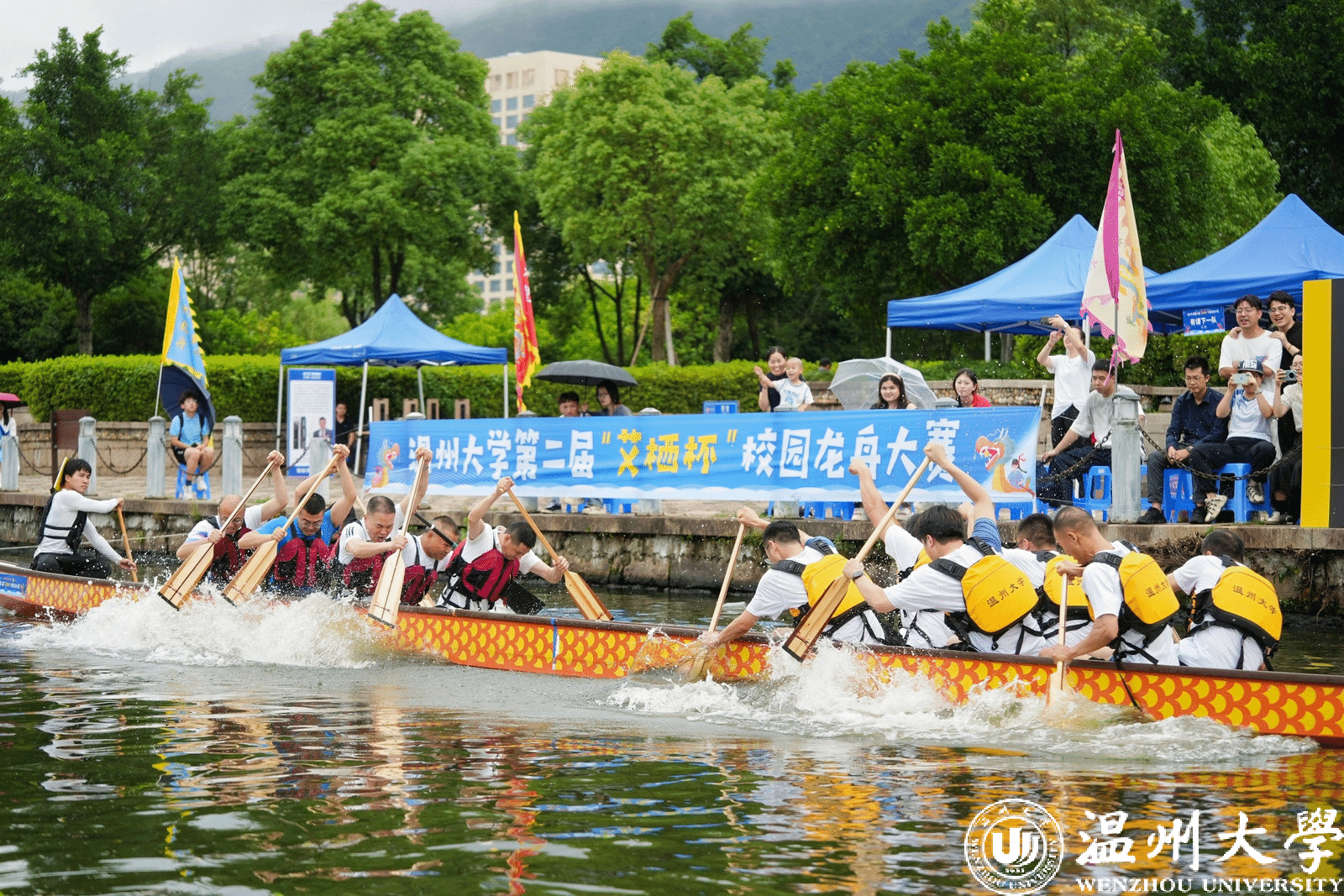 龙舟竞渡,百桨起舞。6月11日下午,我校第二届“艾栖杯”校园龙舟大赛在南校区水上运动中心举行。本次比赛以龙舟文化为纽带,凝聚师生奋进力量,不仅展现了温大学子的青春活力,更以“龙舟精神”书写了校园文化传承的精彩篇章。