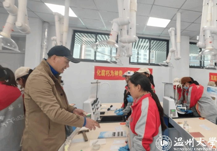 针对嘉黎县中学七、八年级的320名学生,团队量身打造了分层教学方案。八年级学生通过 “制取二氧化碳的改进方法——绿色实验设计” 课程,在课堂上系统学习科学实验基本技能,掌握绿色实验理念,提升科学素养。七年级则创新采用“实验超市”模式,16个趣味实验让学生在打卡体验中感受科学魅力。“大象牙膏”的奇妙泡沫、“法老之蛇”的神秘生长、“火焰写字”的魔幻效果…… 一个个生动实验让课堂变成欢乐的科学乐园。