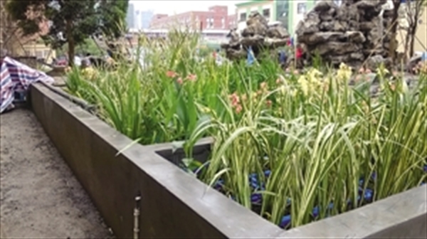 景观型组合生态处理工艺在楼宇中运用。 本报记者 陈晓青