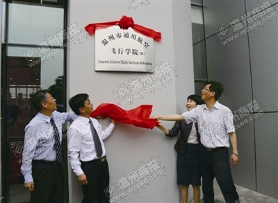 商报讯(见习记者 金灵乐)昨天早上,温州市通用航空飞行学院(筹)在温大学院路校区挂牌成立。以后,我市就有了一个培养各类航空专业人才的专门机构了。
