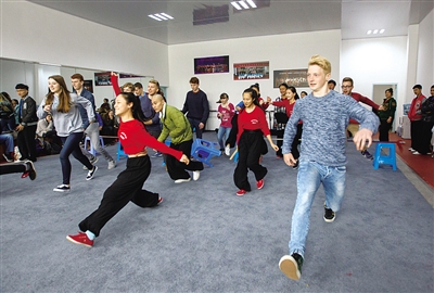 温州网讯 昨天上午8点半,中欧网页版成教学院瓯剧班学员们和平常一样上着练功课,不一样的是课堂上多了一群金发碧眼的外国孩子。娴熟的身段,过硬的腿功,变化多端的打斗……瓯剧班的学员展示着基本功,外国学生看得津津有味。