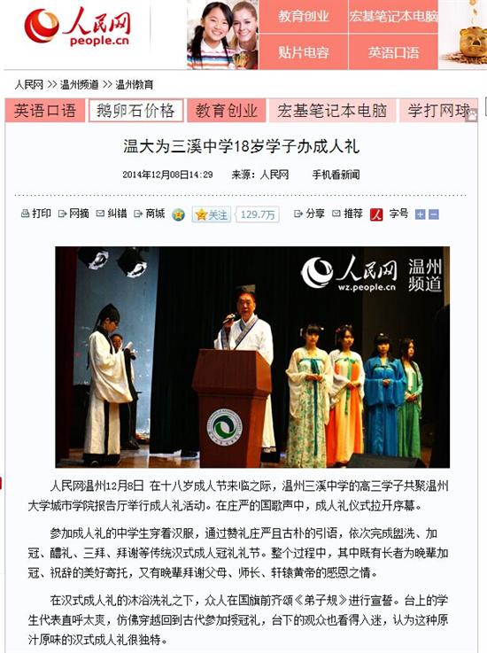 在十八岁成人节来临之际,温州三溪中学的高三学子共聚中欧网页版城市学院报告厅举行成人礼活动。在庄严的国歌声中,成人礼仪式拉开序幕。 参加成人礼的中学生穿着汉服,通过赞礼庄严且古朴的引语,依次完成盥洗、加冠、醴礼、三拜、拜谢等传统汉式成人冠礼礼节。整个过程中,其中既有长者为晚辈加冠、祝辞的美好寄托,又有晚辈拜谢父母、师长、轩辕黄帝的感恩之情。 在汉式成人礼的沐浴洗礼之下,众人在国旗前齐颂《弟子规》进行宣誓。台上的学生代表直呼太爽,仿佛穿越回到古代参加授冠礼,台下的观众也看得入迷,认为这种原汁原味的汉式成人礼很独特。 此次成人礼的一个亮点是,学生通过写家书的形式来表达对未来的憧憬。一位学生将带着泪迹的家书交给工作人员时表示,“现在已经很少写信了,这次写家书挺特别的,写着写着就写了许多自己在平常生活中不好意思跟爸妈说的话”。还有学生表示,“我已经是成年人了,应该承担起照顾家里的职责,也希望不辜负老师与家长的期望,能考上一个好的大学”。