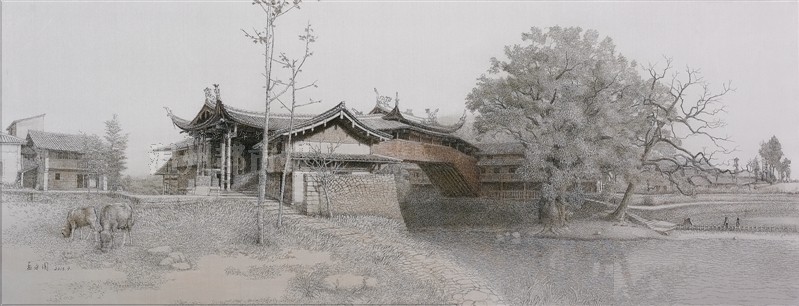 日前,在浙江东阳举办的“2014世界工艺文化节”上,温州发绣《丝语廊桥》荣获工艺美术作品金奖。昨日,该作品被杭州市工艺美术博物馆收藏。