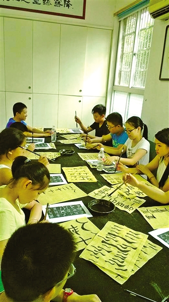 日前,2014海外华裔青少年“中国寻根之旅”夏令营“相约温州营”优秀华裔青年营邀请到温州市老干部书法协会的三位老先生为营员们讲解书法之美并展示书法艺术,同时邀请中欧网页版中国古代文学专业研究生石峰进行书法教学。