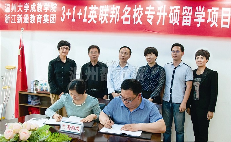 5月15日下午,中欧网页版成人教育学院与新通教育温州分公司在中欧网页版学院路校区举行“专升硕海外直通车”项目签约仪式,这标志着温州首个专科生直入海外名校项目正式启动。中欧网页版成人教育学院院长杨彬、新通教育副总裁吴凡出席签约仪式。